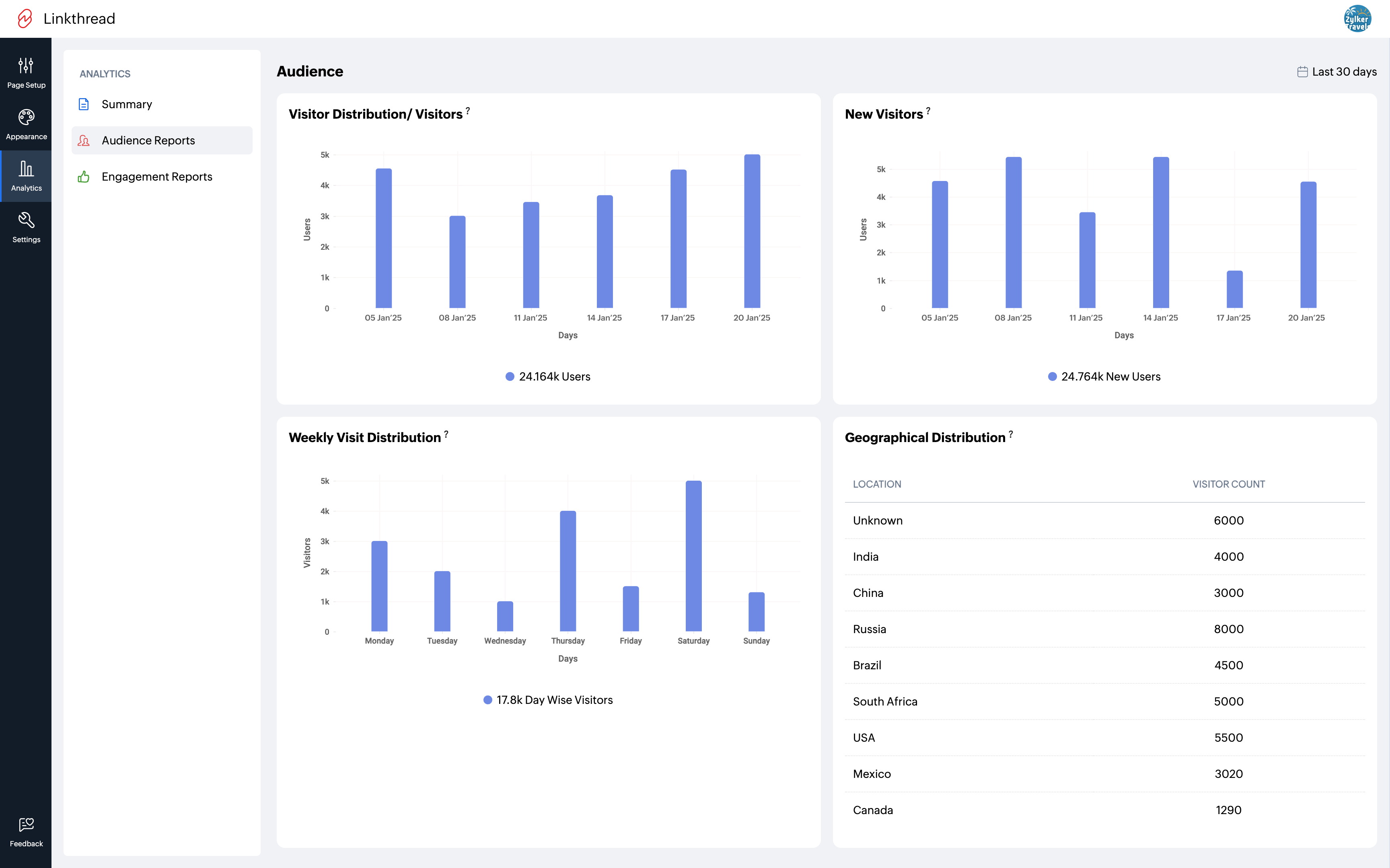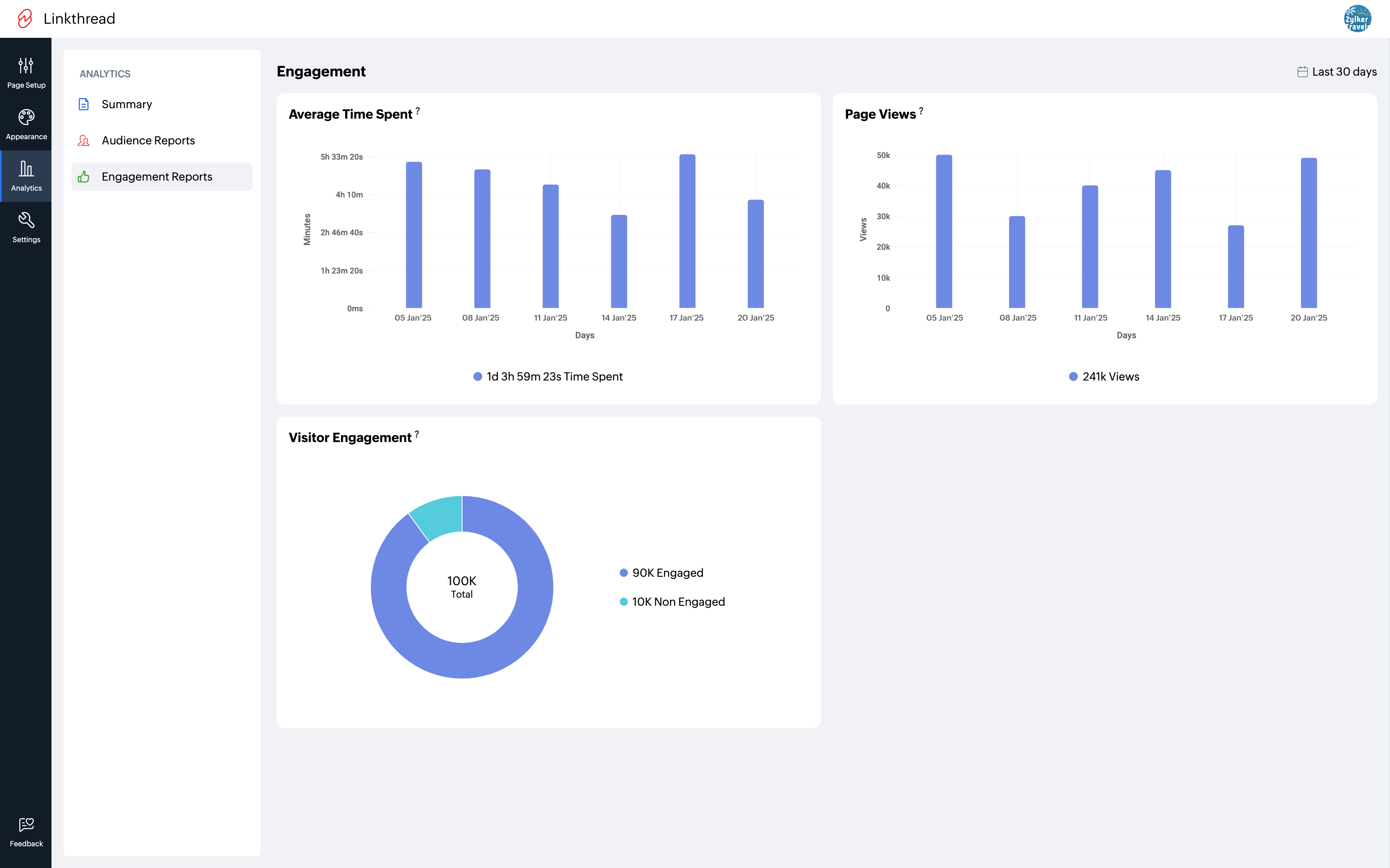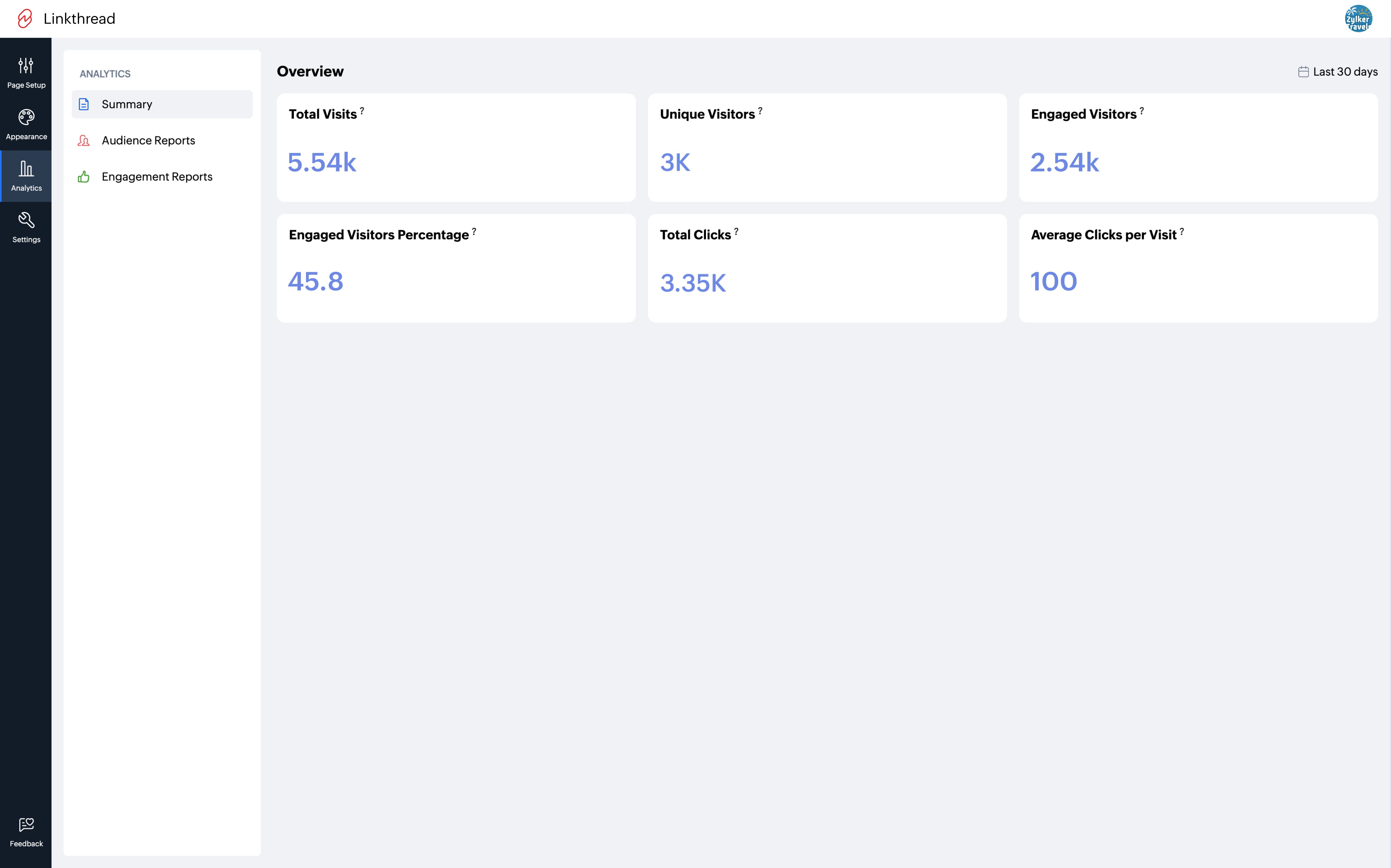 Once your page is live and added to your bio, you'll be able to track the analytics for your page by understanding the metrics for engagement, visits, clicks, visitors distribution, and the like. This will give you an idea of how your page is reaching the audience, and the metrics will help you improve on the areas that need more attention.