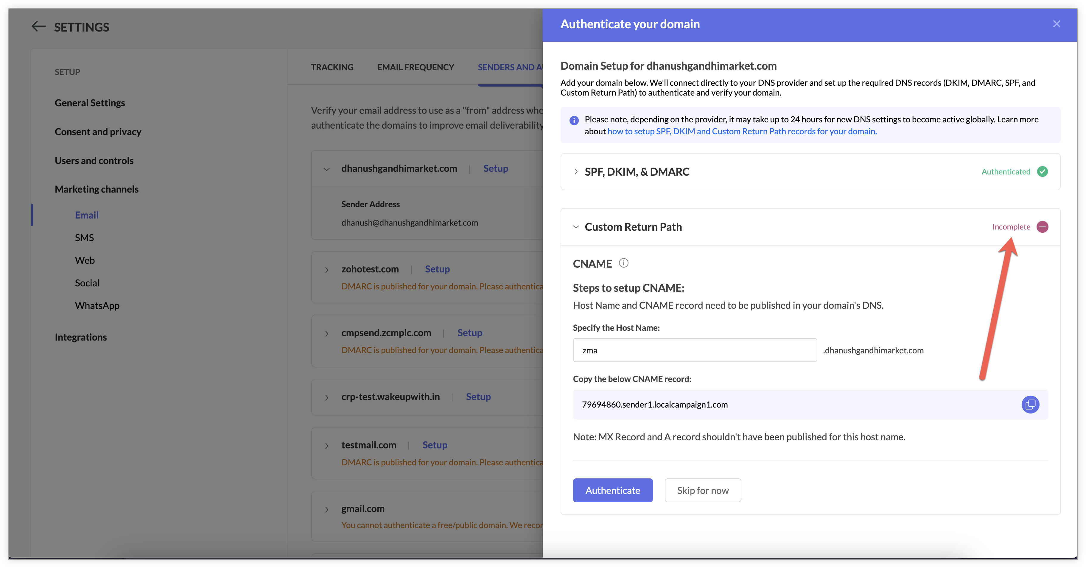 Now, your domain will move from Incomplete to Authenticated status.