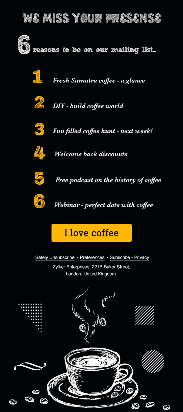 In addition to these strategies, there are a few points to be considered in footer info while sending winback campaigns.