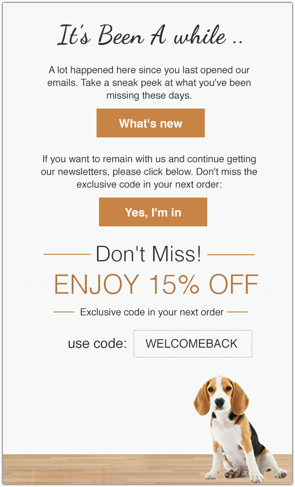 - You can include marketing strategies such as offers, coupons, etc to increase the interest of your idle recipients.