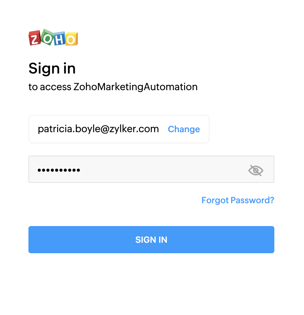 If you already have an account with zoho.com. You can make use of your existing email address and password to log in to Zoho Marketing Automation.