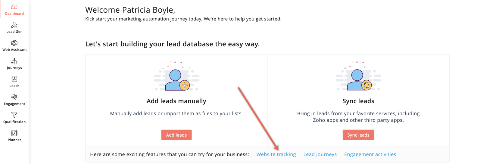 On the Welcome page of Zoho Marketing Automation, click the Get website code button. The Connect website page will appear.