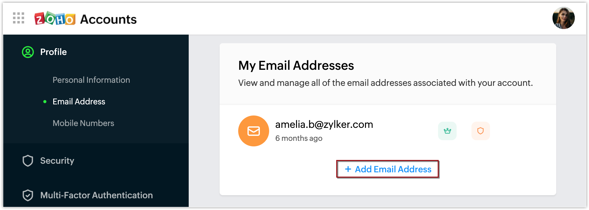 Click + Add Email Address.