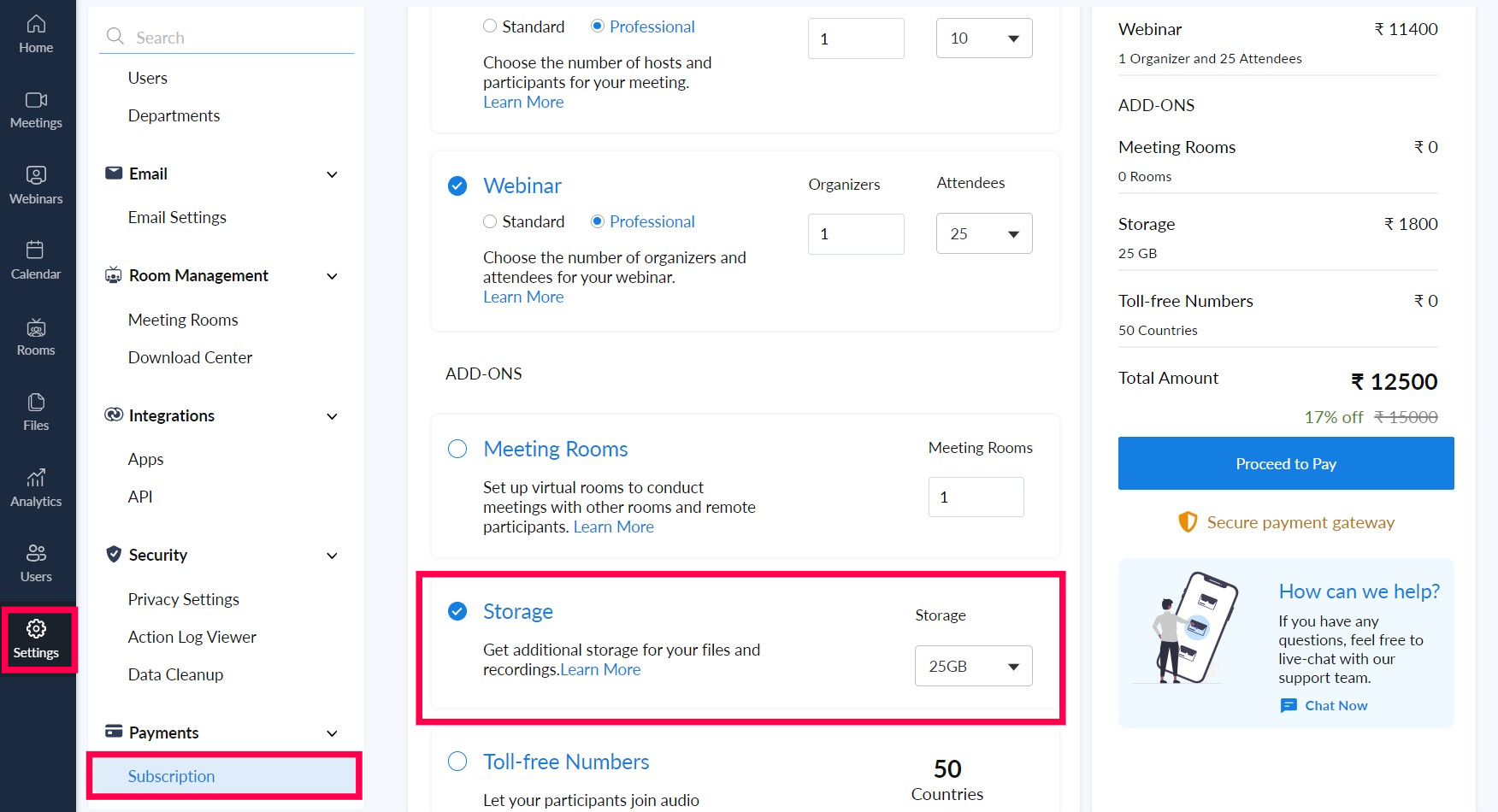 Pricing of Storage Add-on (Meeting) | USD | INR |