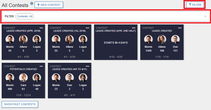 You can filter contests based on the contest status in the All Contests page.