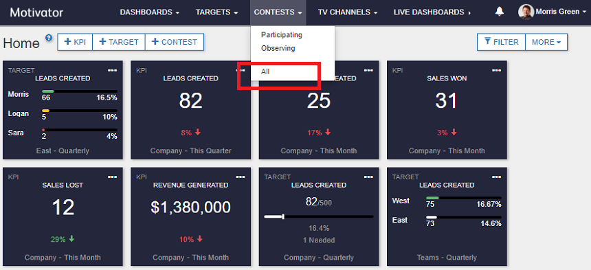 Motivator allows users to observe contests and get detailed information without participating in them. Observers cannot be added to a contest if everyone in the company is a participant.