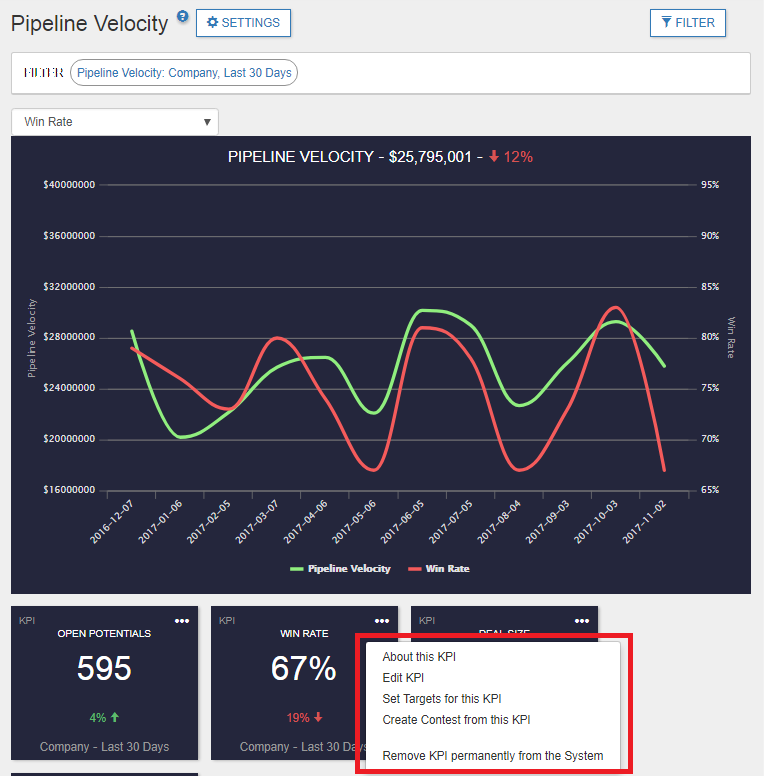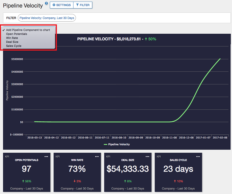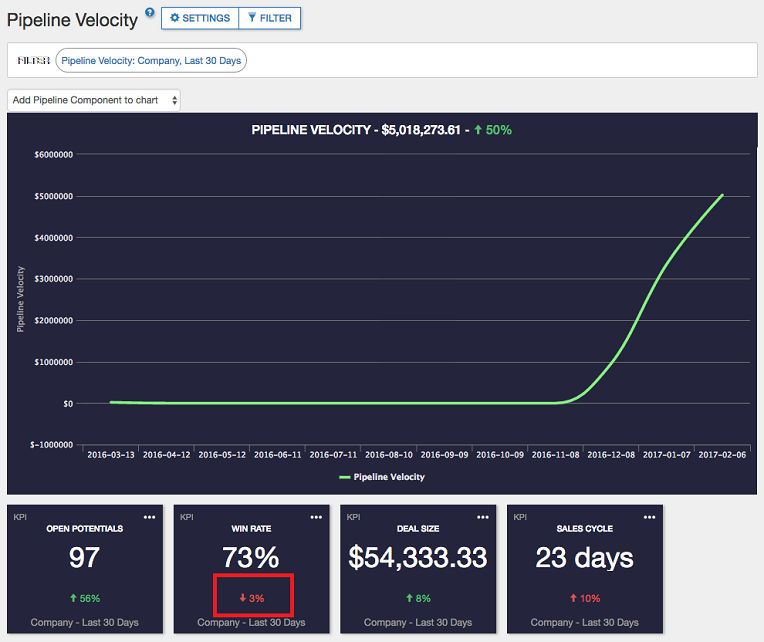 To boost Pipeline Velocity, motivate sales behaviors that will increase your Open Potentials, Win Rate, or Deal Size, or find ways to reduce your Sales Cycle.