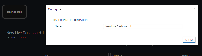 - In the list of live dashboards, click + button to add a new live dashboard.