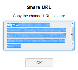 - Copy the Channel URL and click OK. (TV channel will be shared based on its Channel Security Settings, regardless of the share settings of the dashboard).