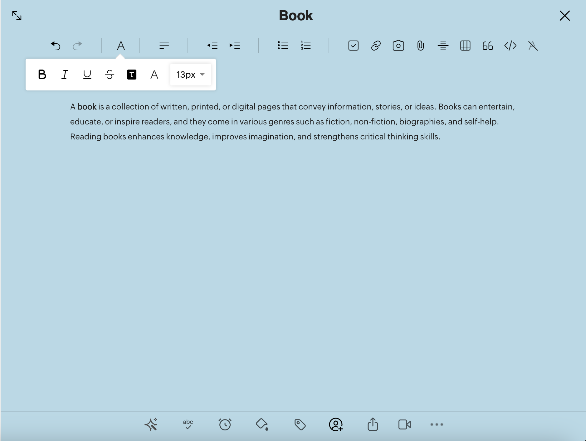Zoho Notebook provides a wide range of formatting and editing tools to help users structure and enhance their notes: