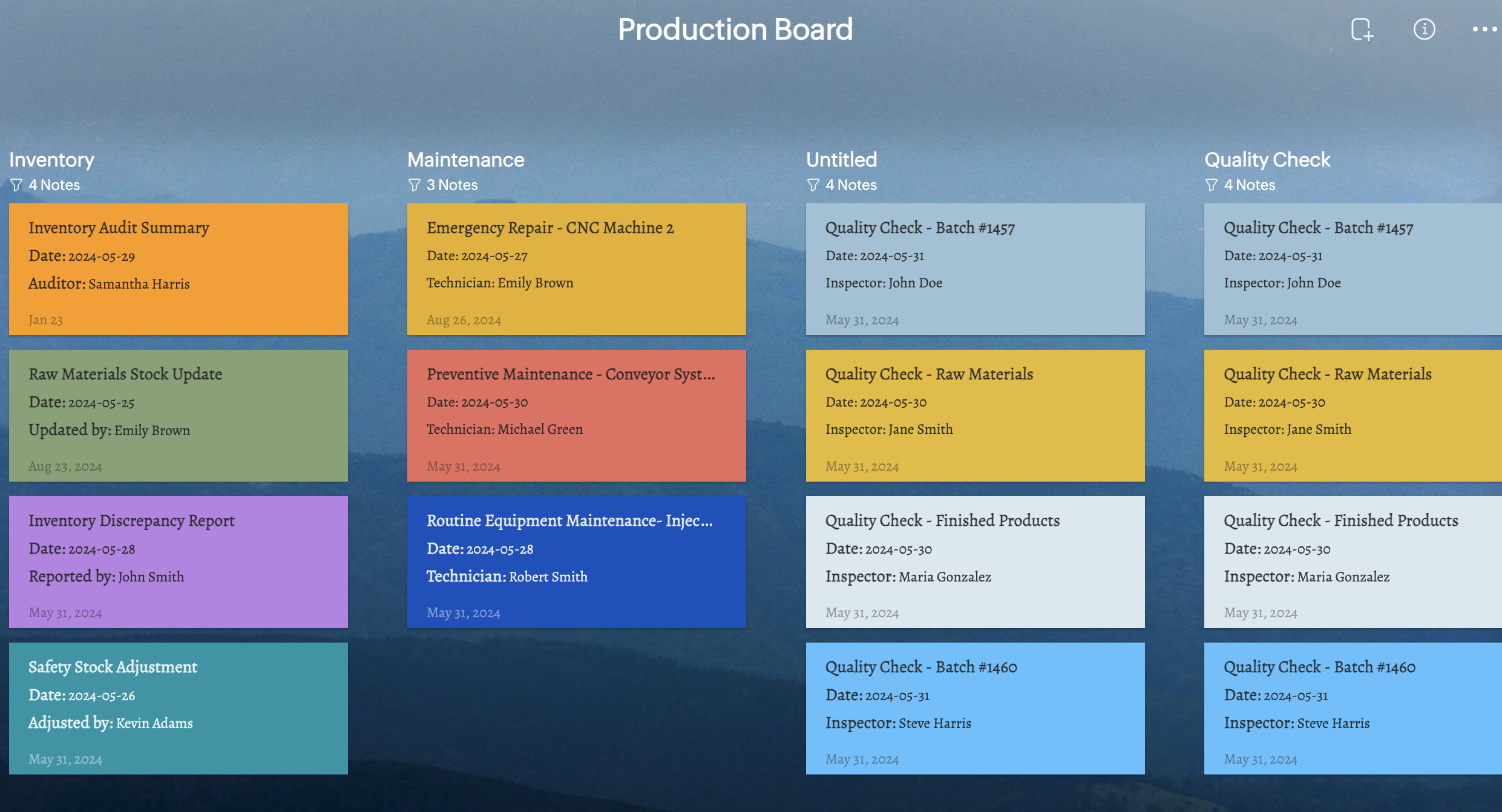 Noteboards provide a flexible, canvas-style workspace that allows users to combine text, images, sketches, and other elements in a single space.
