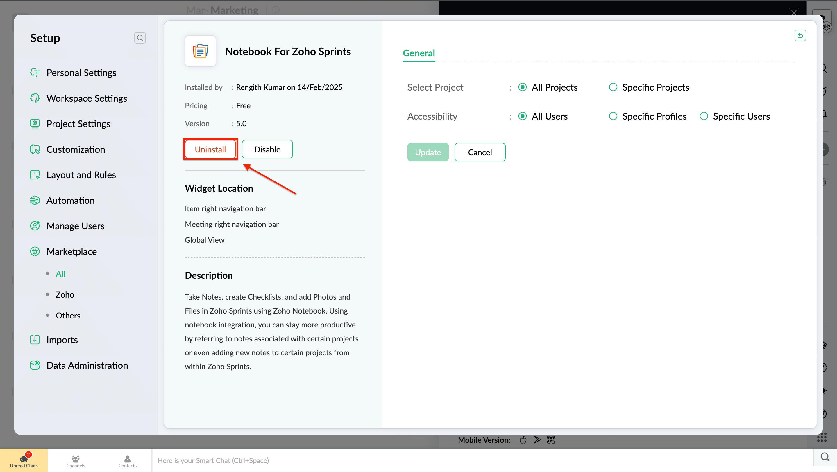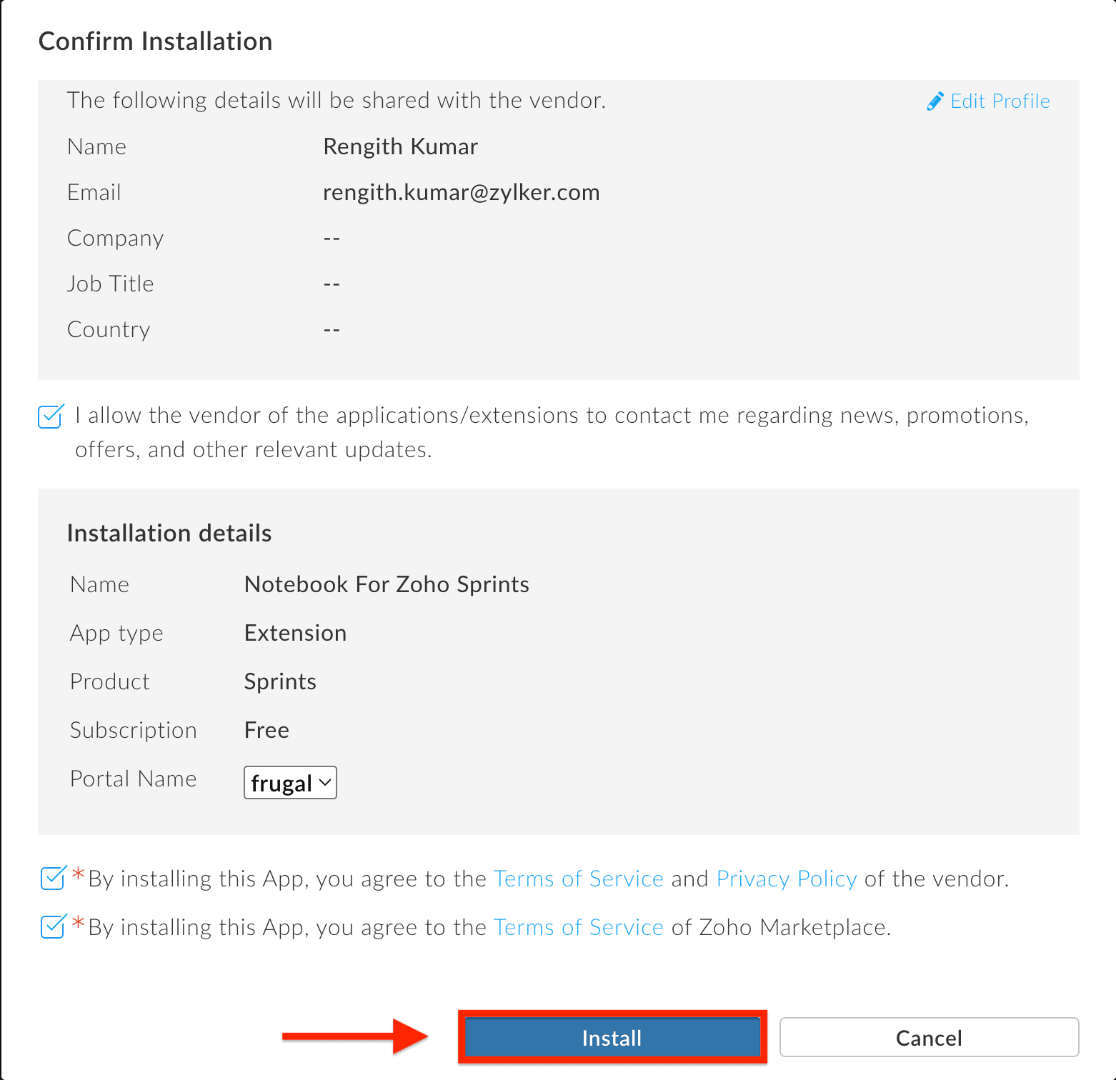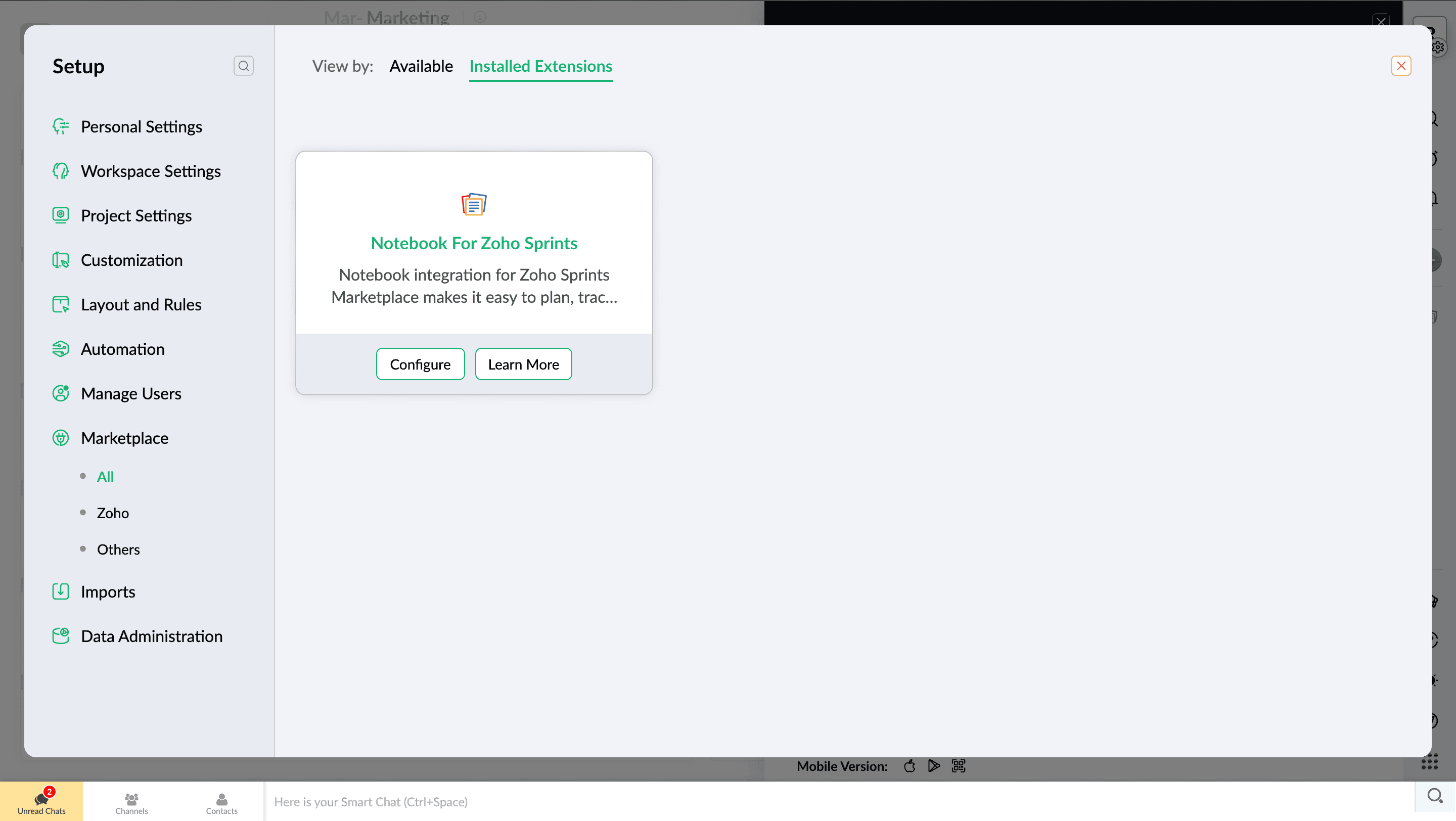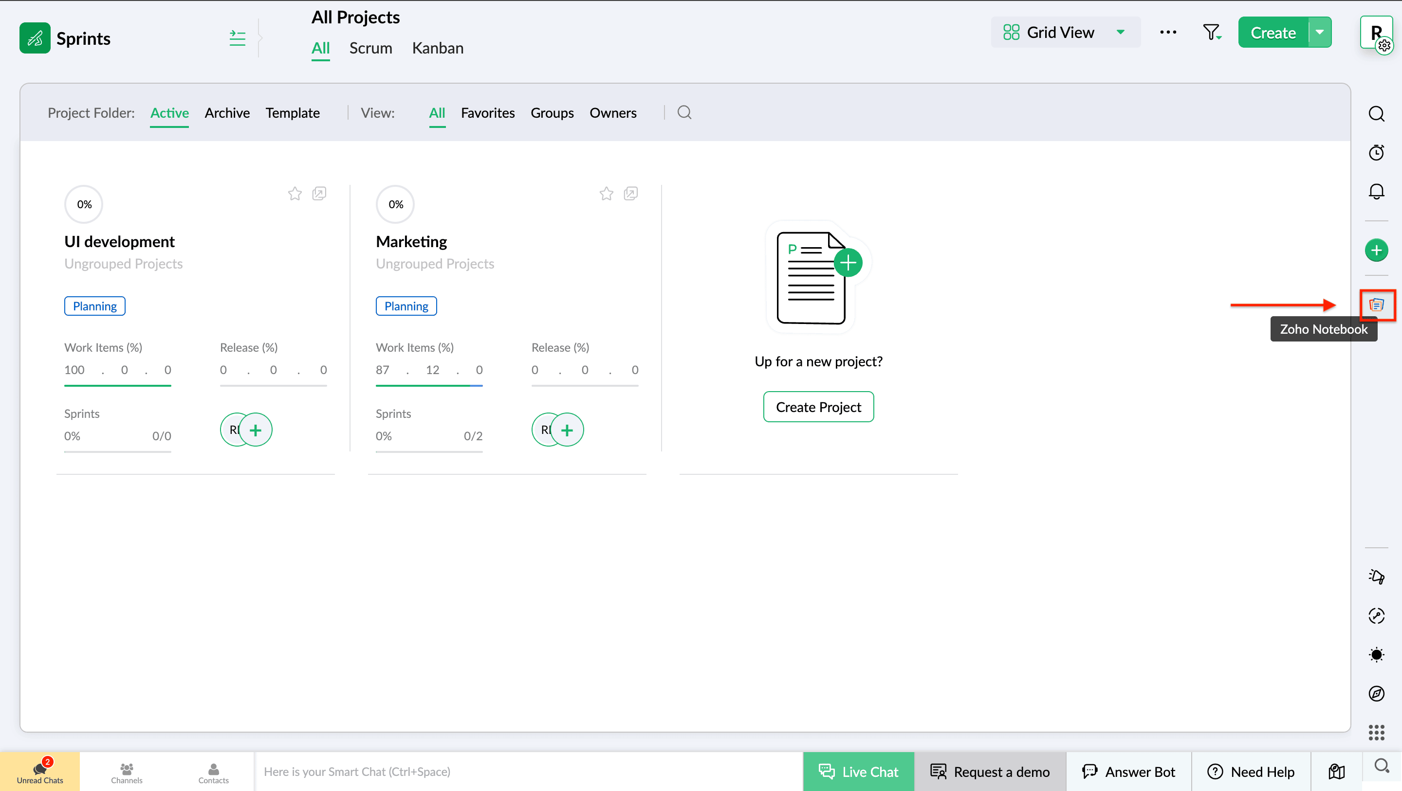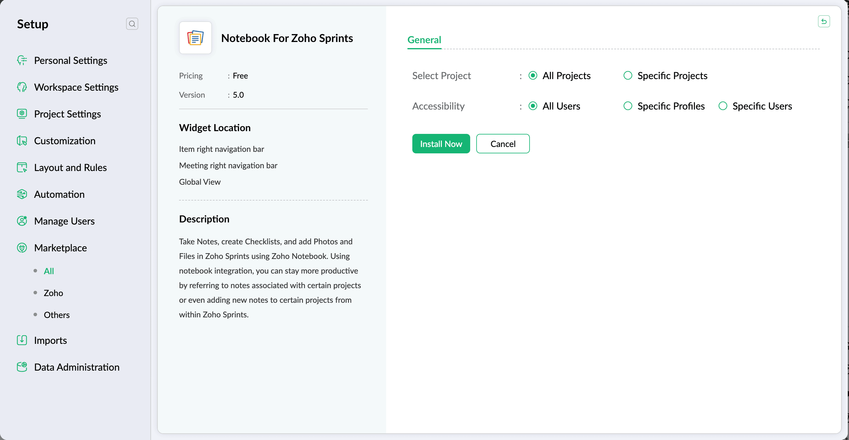 Search for and click on Zoho Notebook for Zoho Sprints.