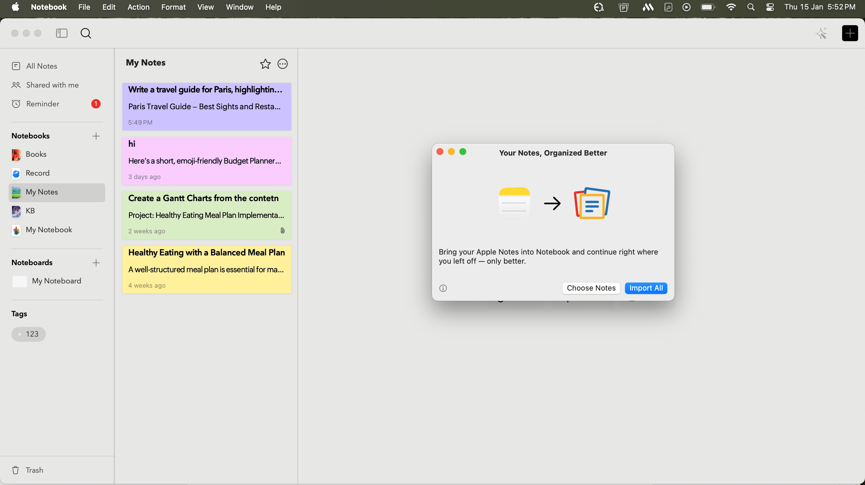 Using this feature, users can securely import their Apple Notes into Zoho Notebook and continue managing them across multiple devices.