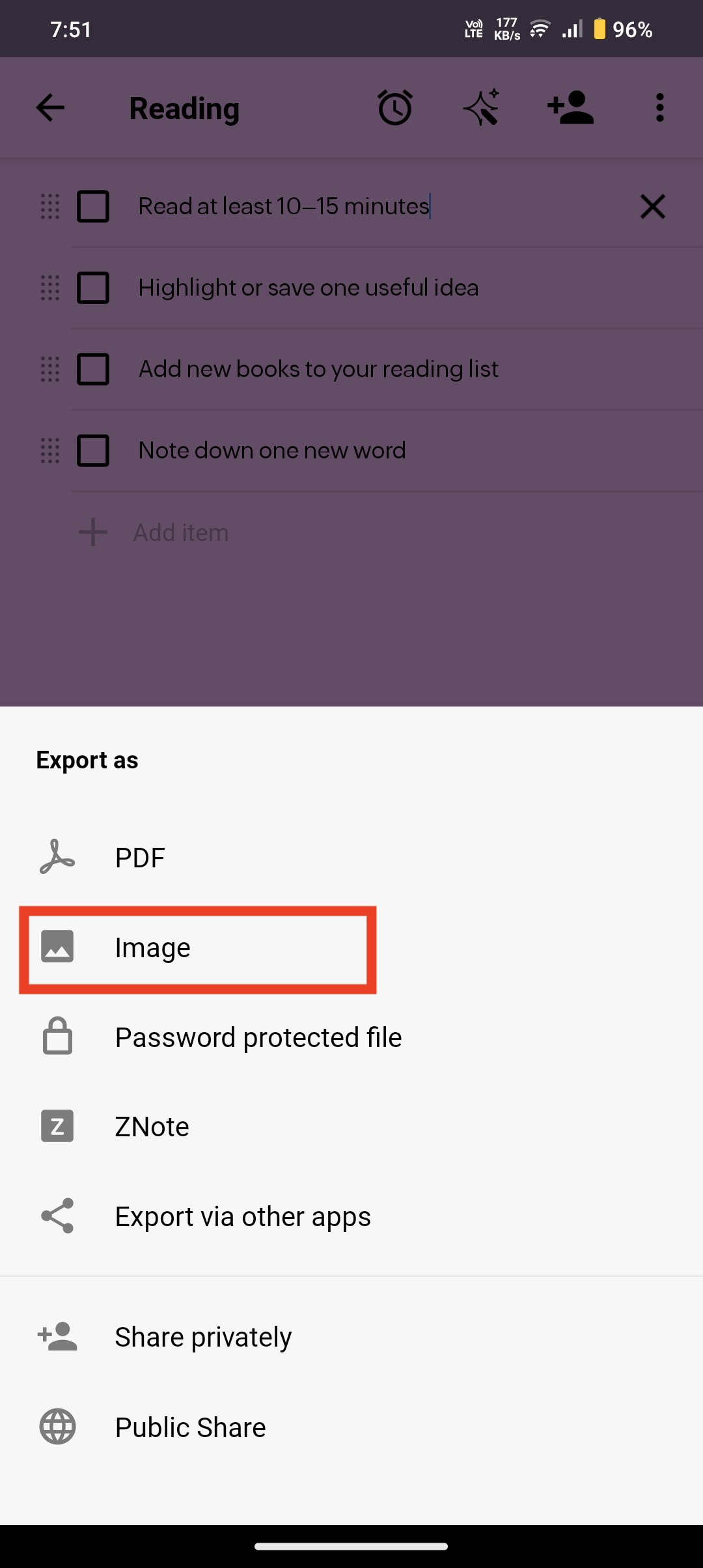 Follow these steps to export your note as an image: