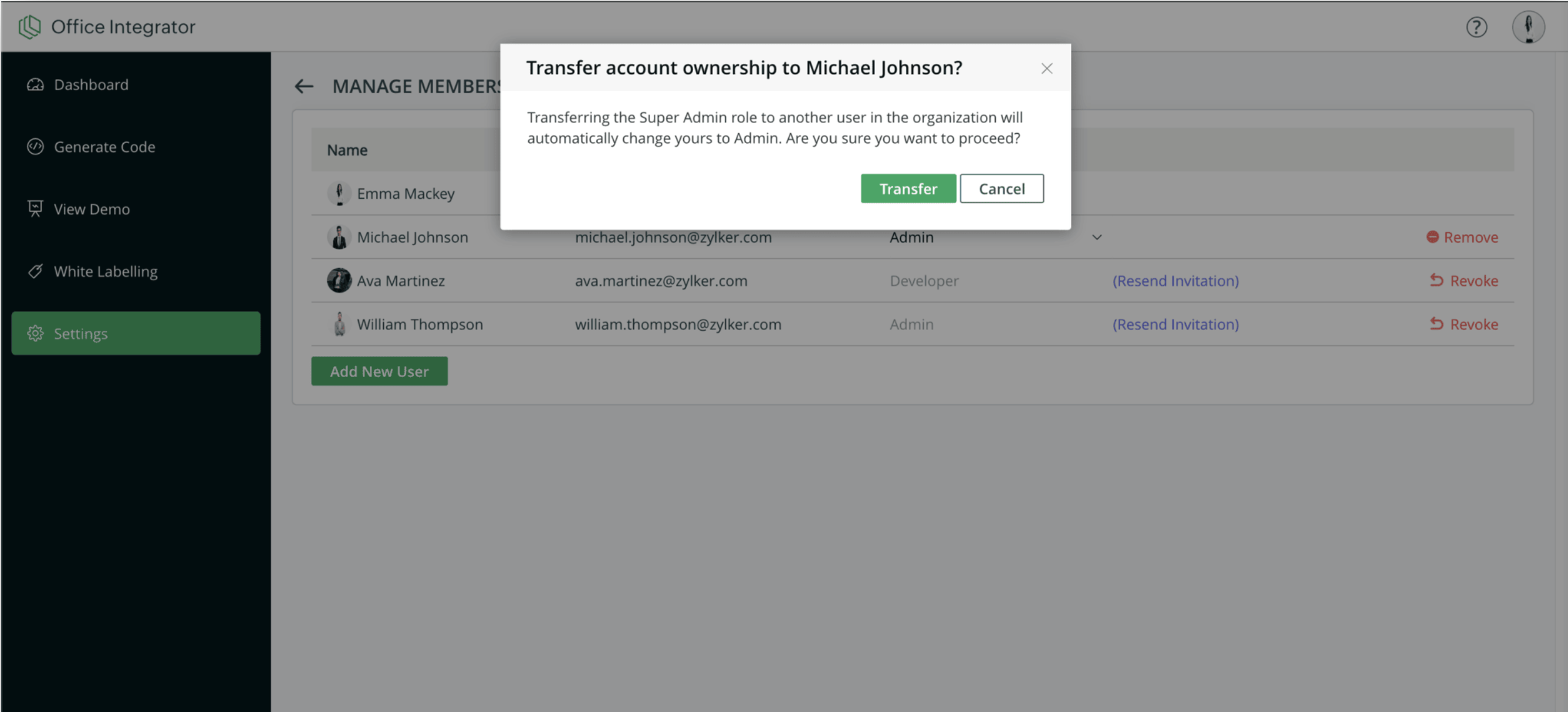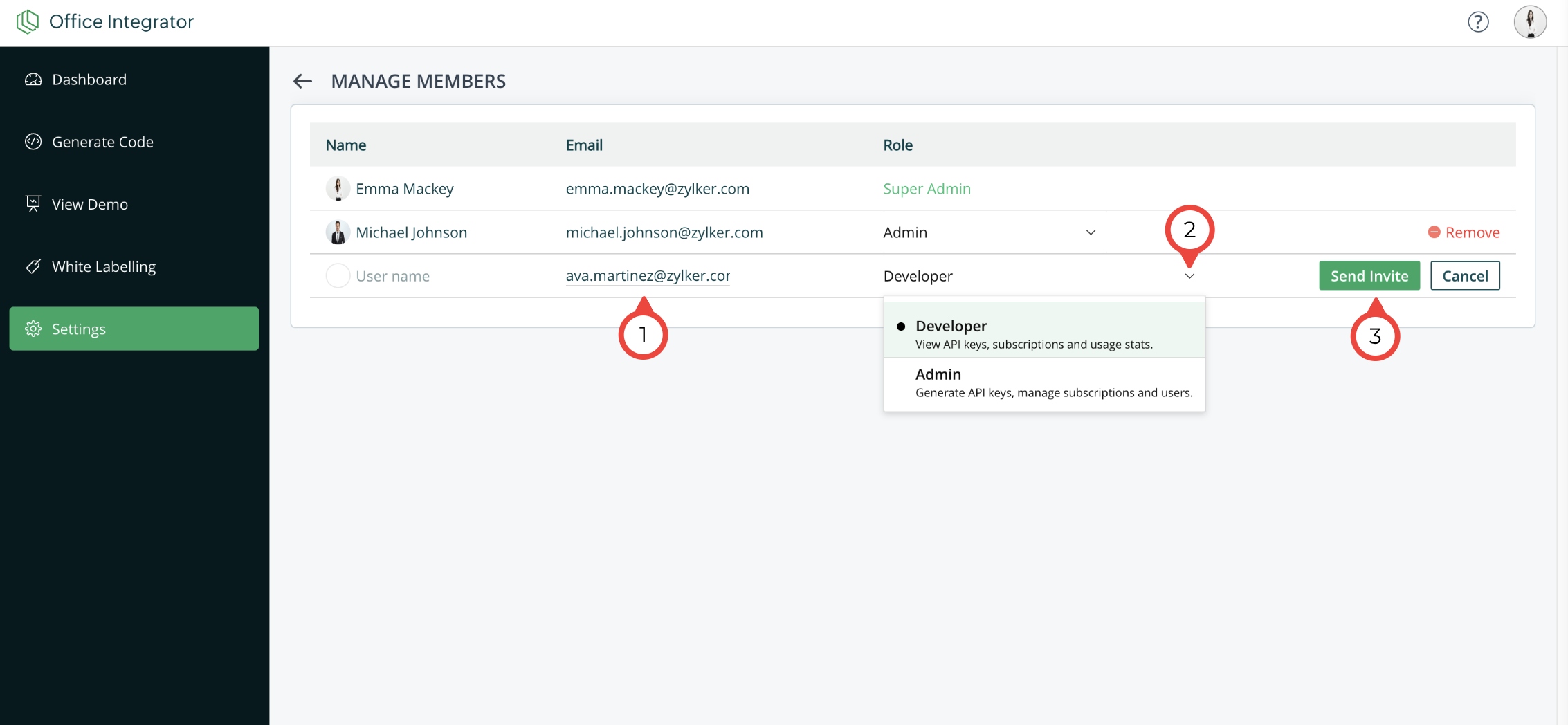 Role | View APIKey Information | View Subscription Information | View Usage Stats | Generate New APIKey | Manage Subscription | Manage Members in Organization | Transfer Ownership | Modify White Label Settings | Delete Account |