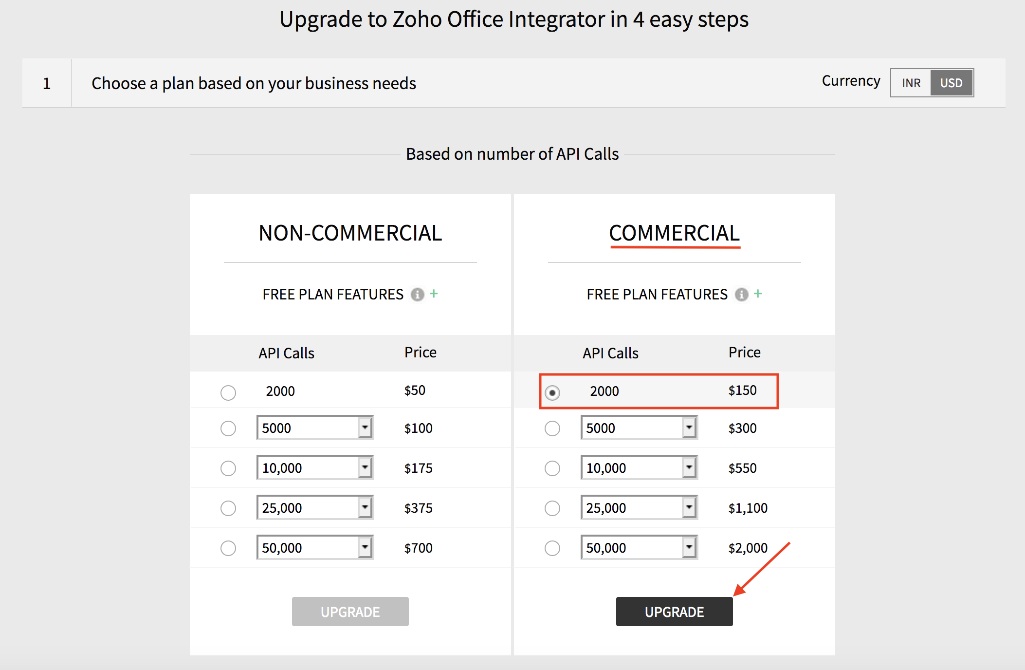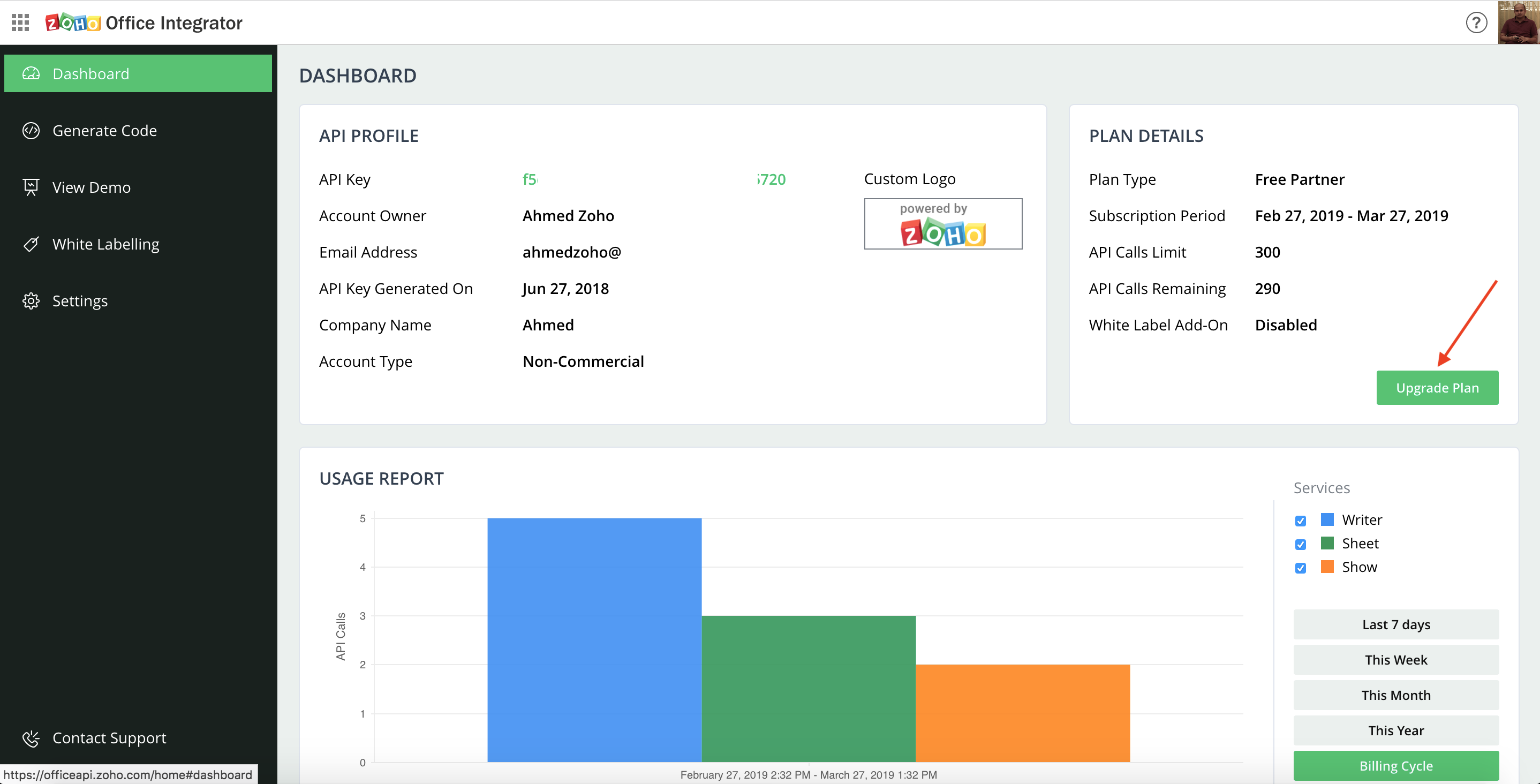 Step 1: Login to Office Integrator account and click "Upgrade Plan" from the dashboard.