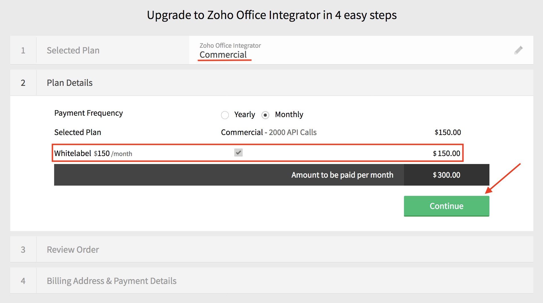 Step 3: Check the Whitelabel option from your subscription plan details and click "Continue".