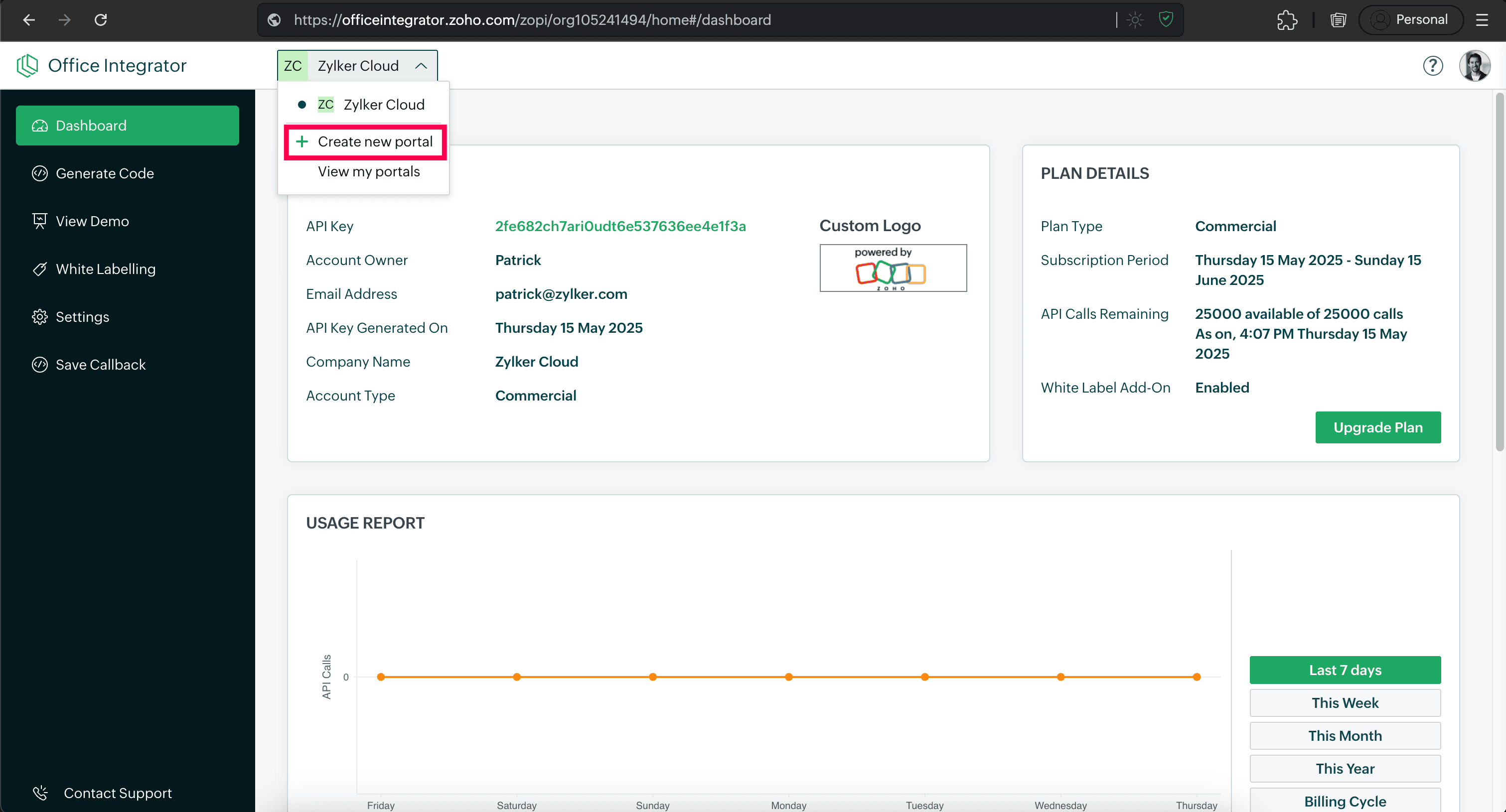 Step 1 : Sign up for a Zoho account, you can get an API key by performing the following steps: Step 2: Access the Zoho Office Integrator "Sign In" page and enter your Zoho Account details. Step 3: Fill out the API key registration form that will look ...