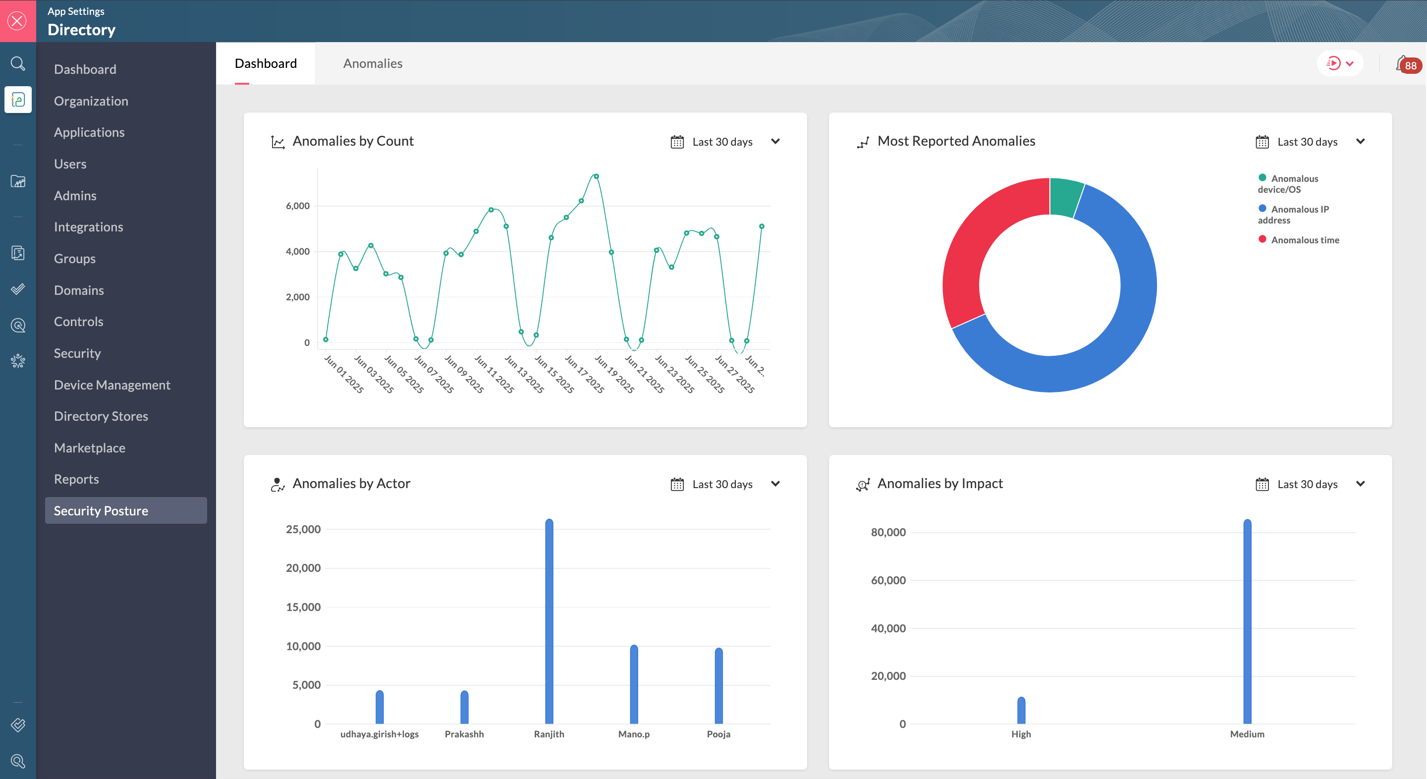 Any organization that deals with identity and access management or other forms of customer data must ensure that the data security is never compromised. Zoho One enables the organization owner and admins to keep an eye on unusual activities happening in the application. These unusual activities are labeled as anomalies and will be listed under the Anomaly Detection module.
