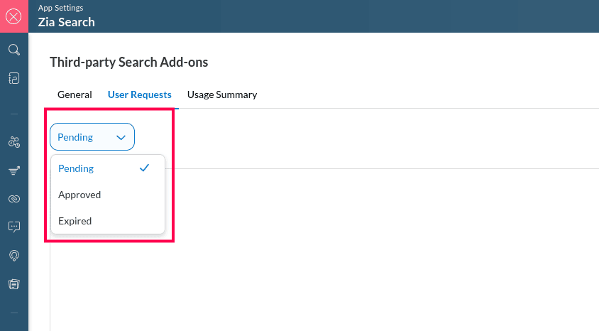Click User Requests. You can filter and view requests that are pending, approved, or expired.