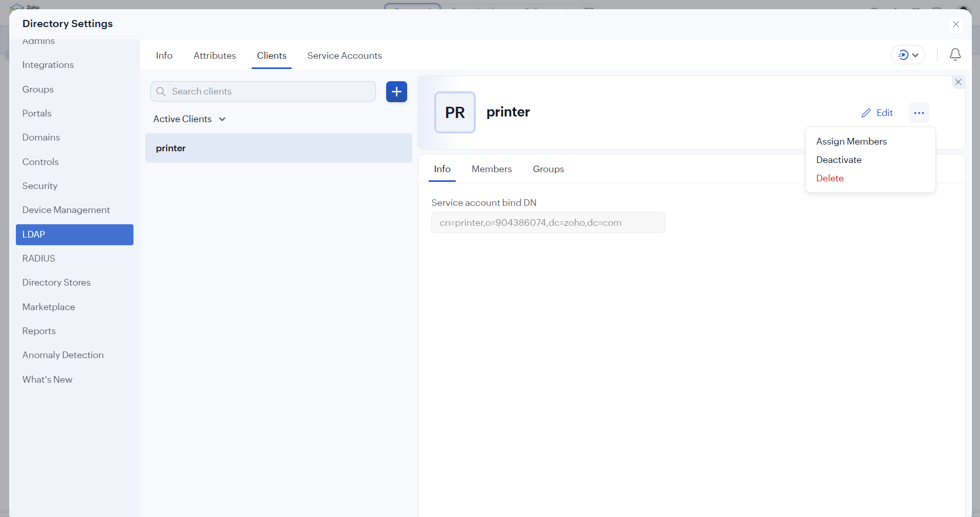 Once you've added LDAP client and configured permissions for it, you can now assign members to each client.