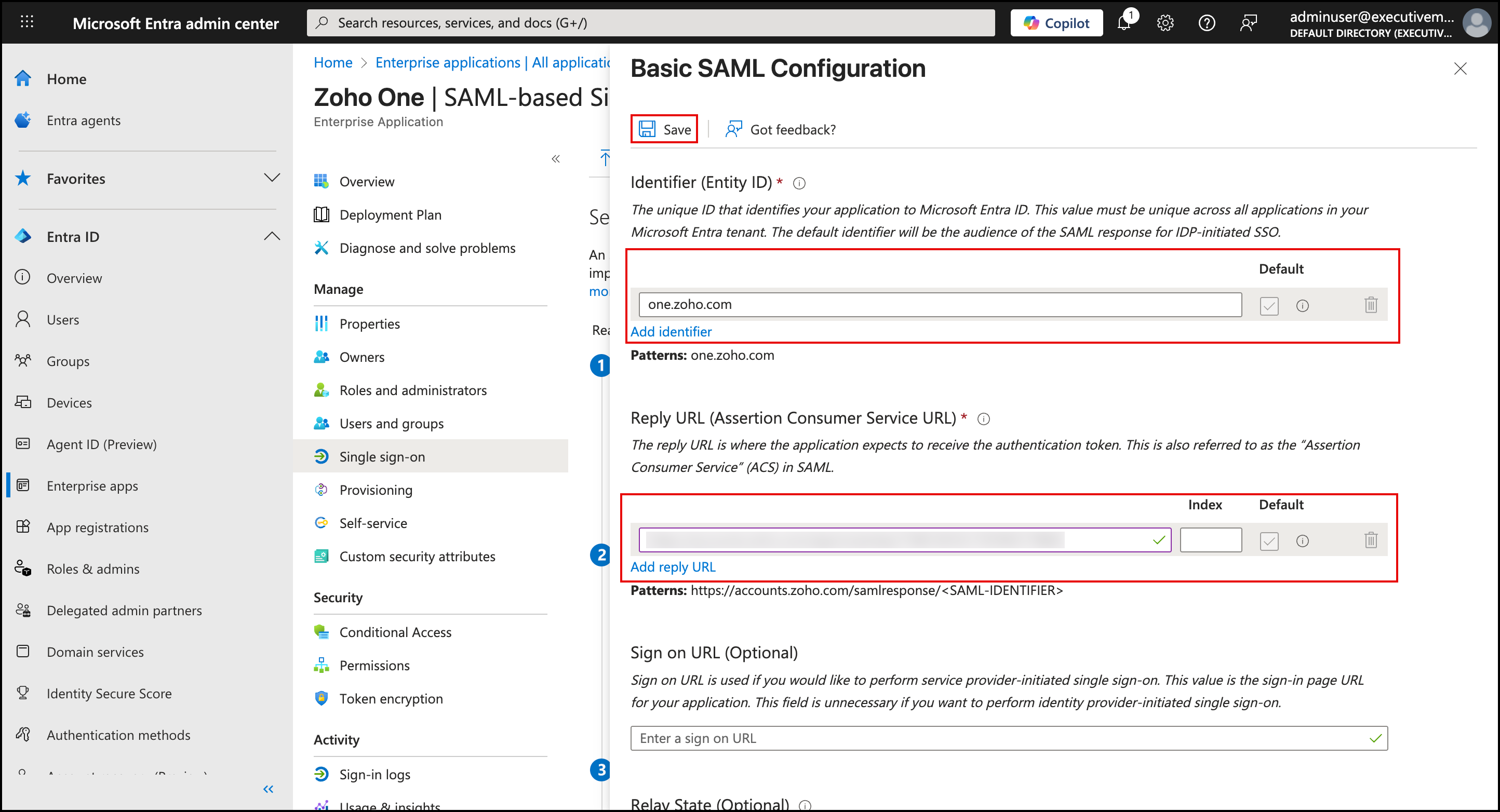12. Resume from Step 6 under adding Microsoft Entra ID as an IdP in Zoho One and complete the configuration.