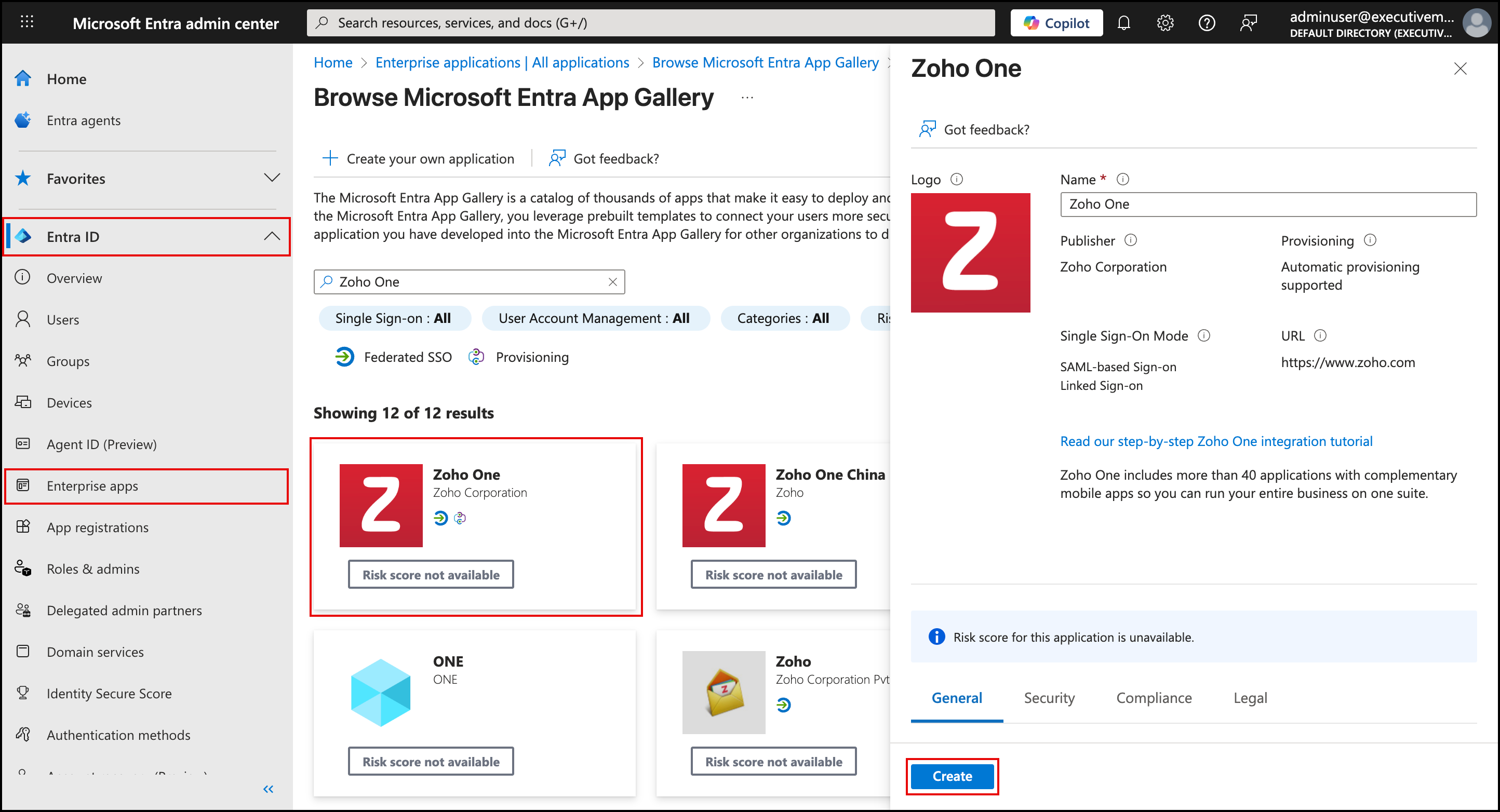 In Microsoft Entra ID: Add Zoho One as an enterprise application