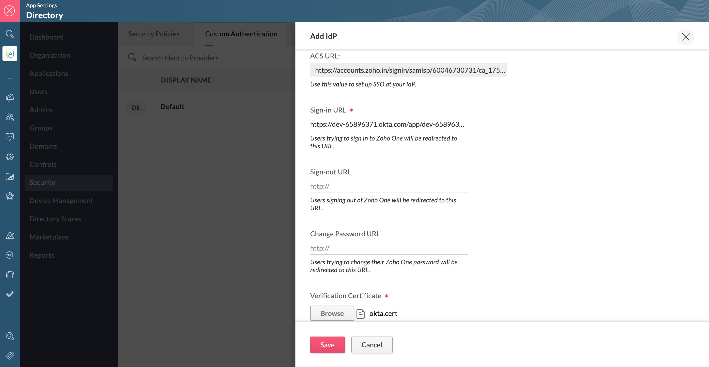 Custom Authentication - Okta | Admin Guide - Zoho One