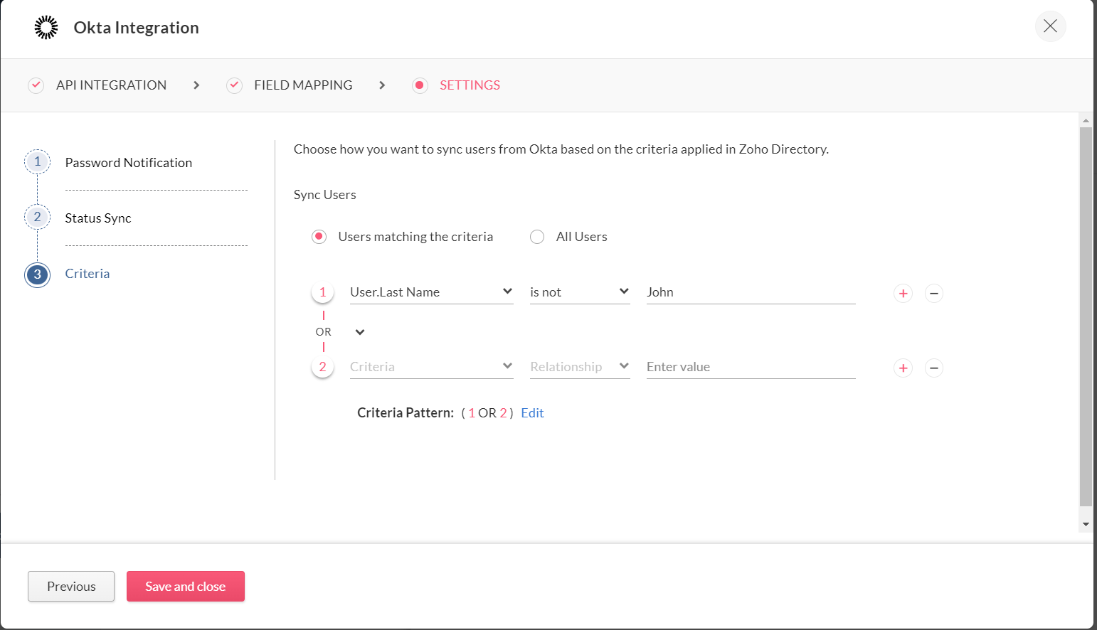 how you want to sync users from Okta based on the criteria applied