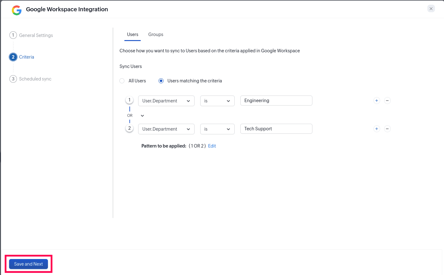 2. If the directory store does not support Group Sync, only the Users syncing criteria is displayed by default.