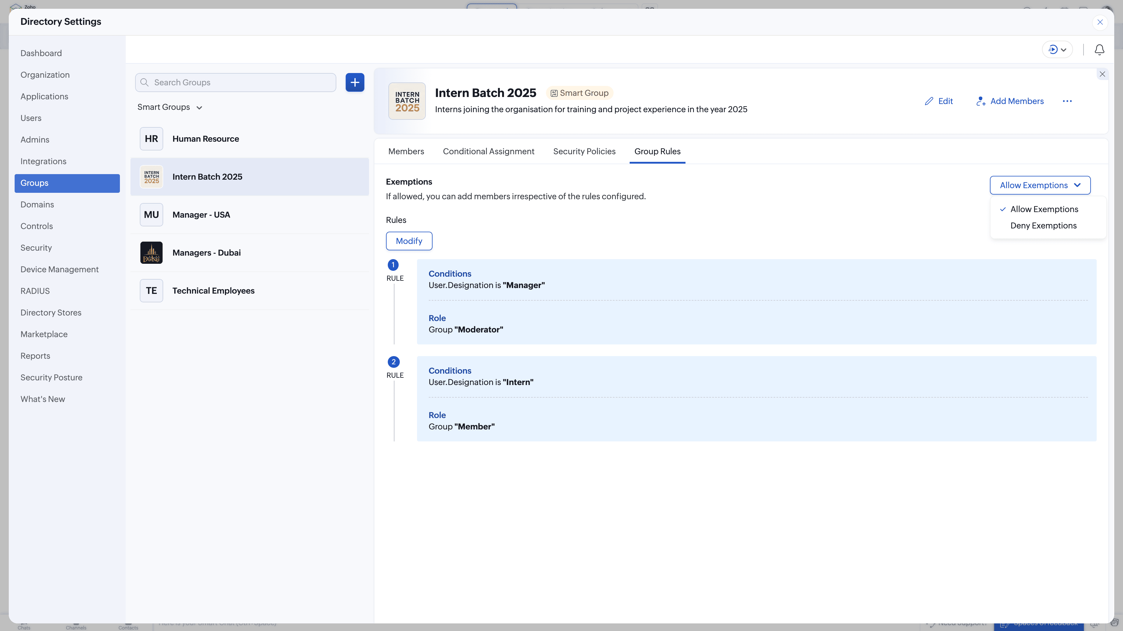Exporting Members: Smart groups also offer a useful feature by which you're allowed to export manually added users in various formats, including CSV, XLS, XLSX, and VCF.Learn how to use the best tools for sales force automation and better customer engagement from Zoho's implementation specialists.
