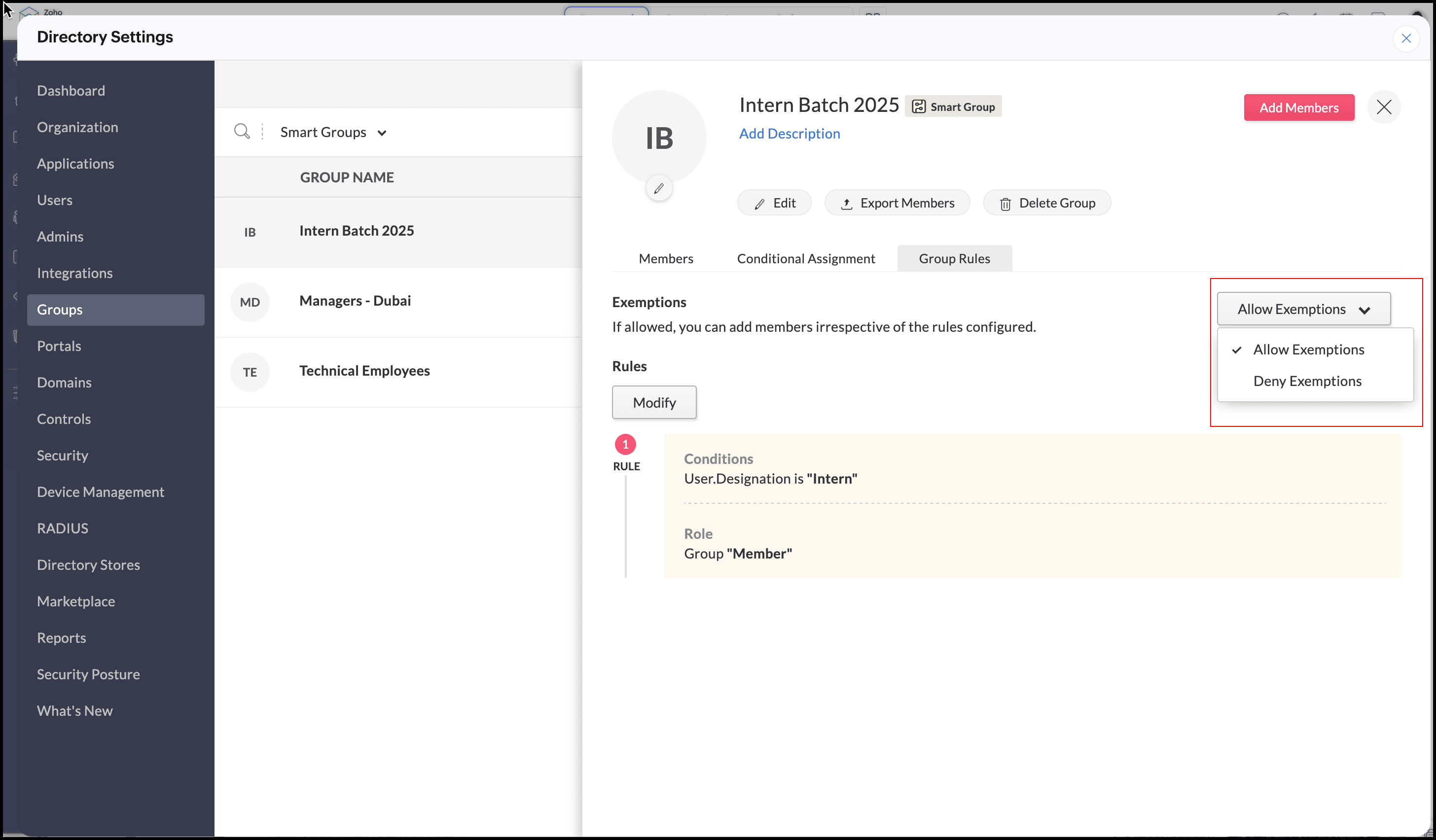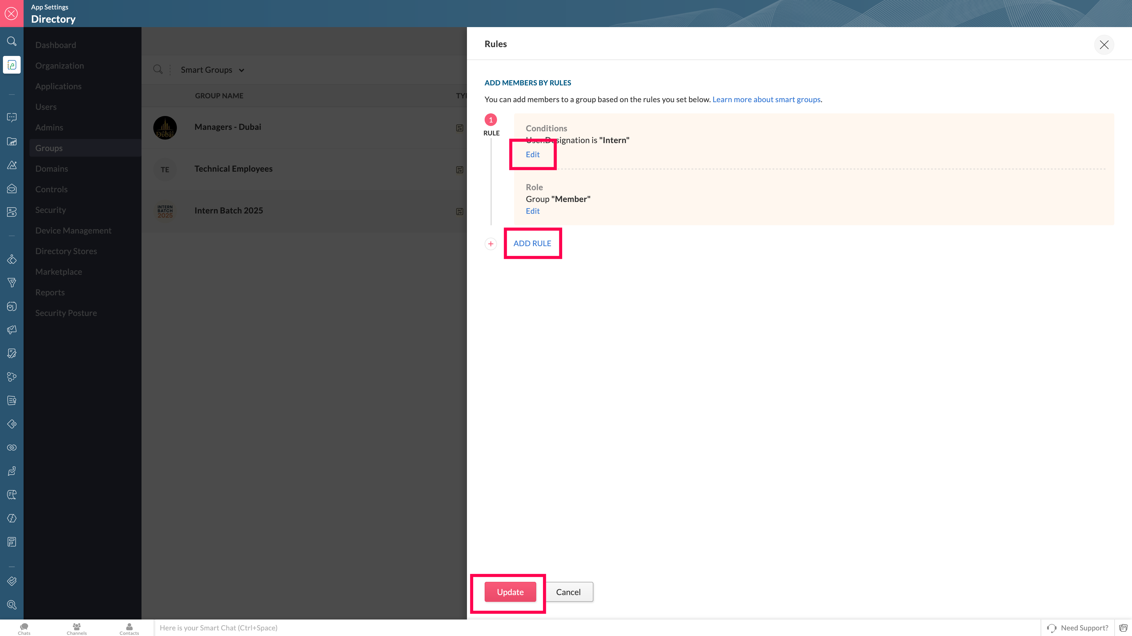 Note: Updating a smart group's rules is a sensitive action, so reauthentication is required once every five minutes.