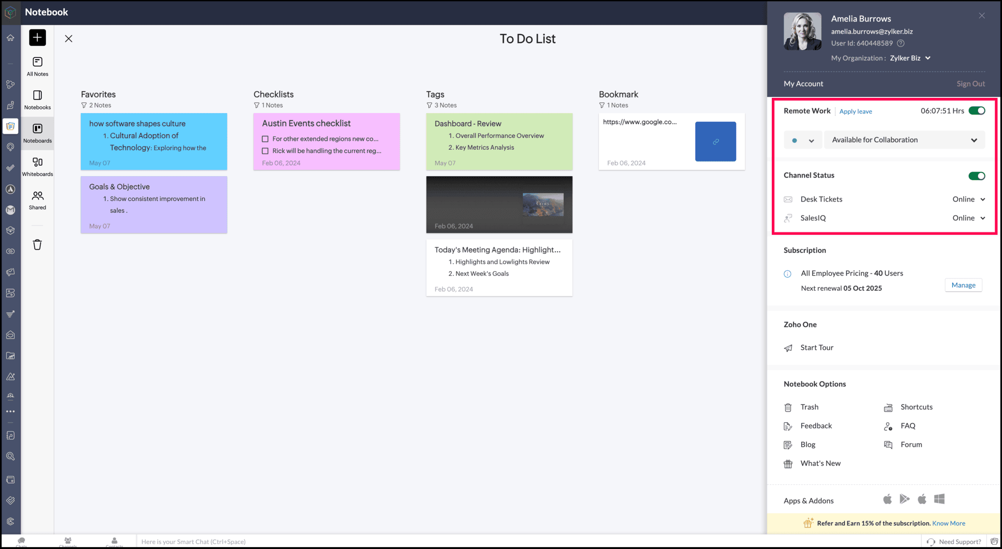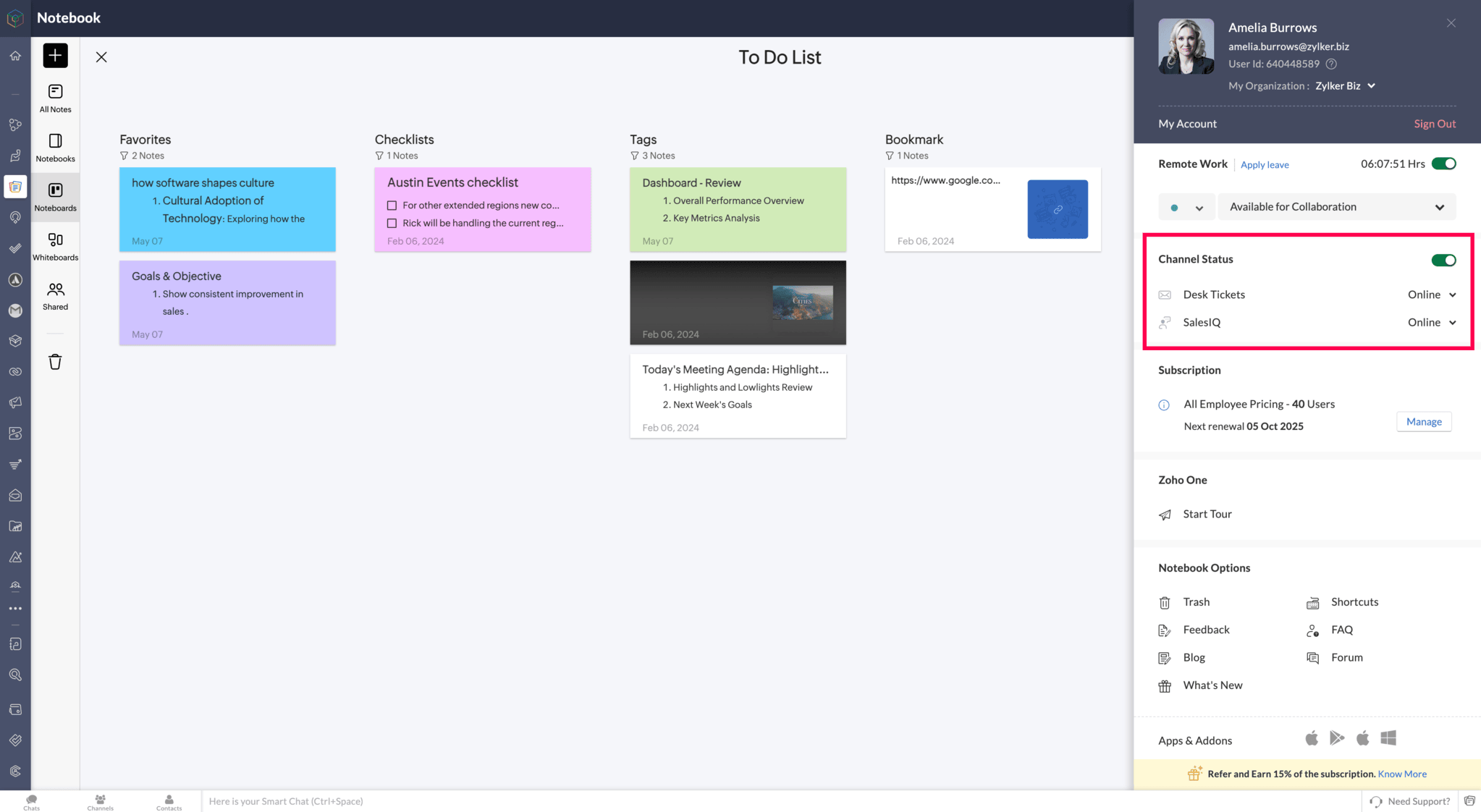 | Cliq | Use custom or predefined statuses (e.g., On a Cliq call), as well as time-bound statuses (e.g., Meal Break) |