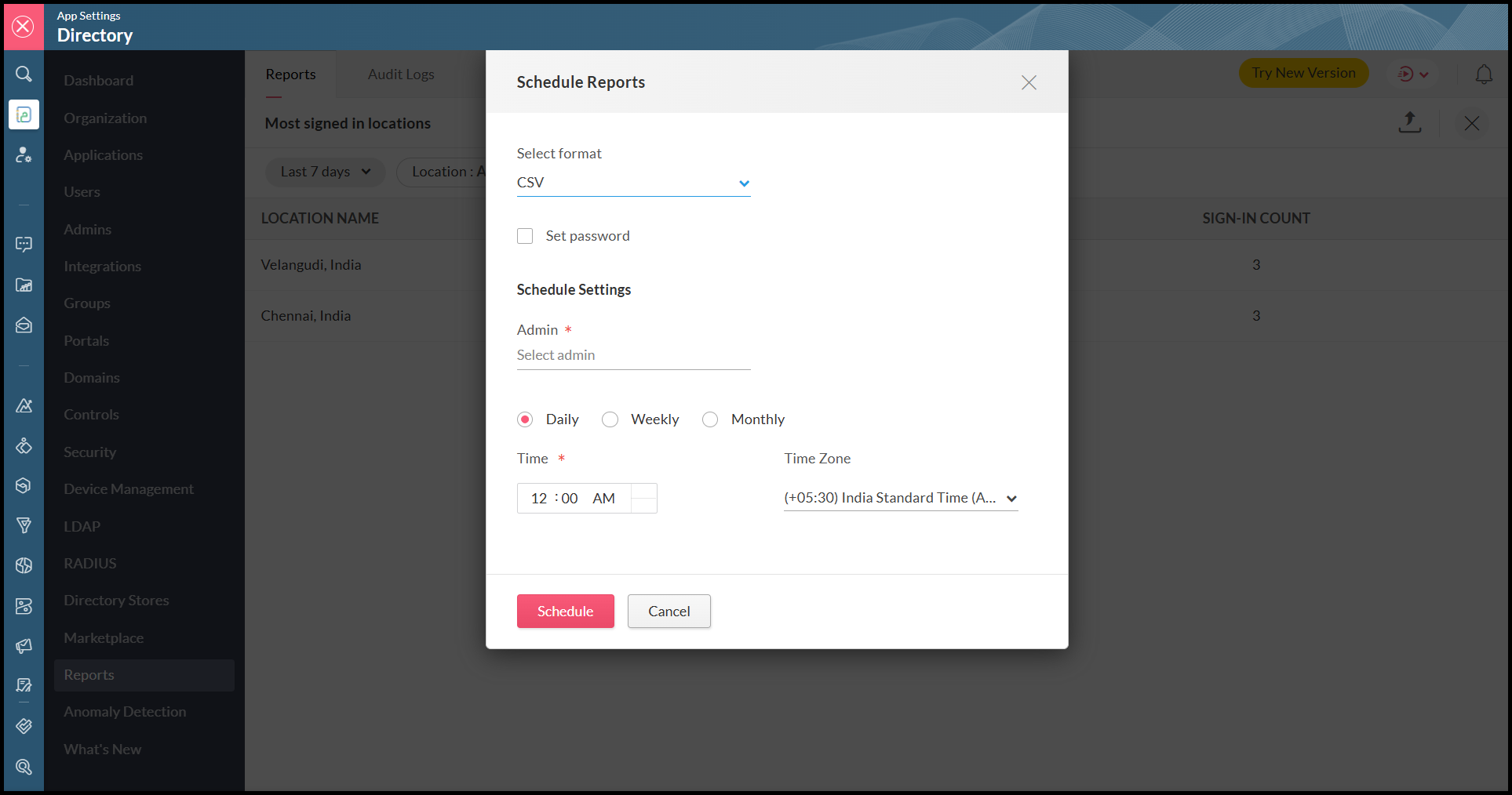 Prerequisite: The Sync Tool must have been installed and run at least once. Open the Sync Tool. Go to Schedule Sync, then enable scheduling. Set sync interval and time, then click Save Schedule. Note: If you add new OUs or delete exclusion rules ...