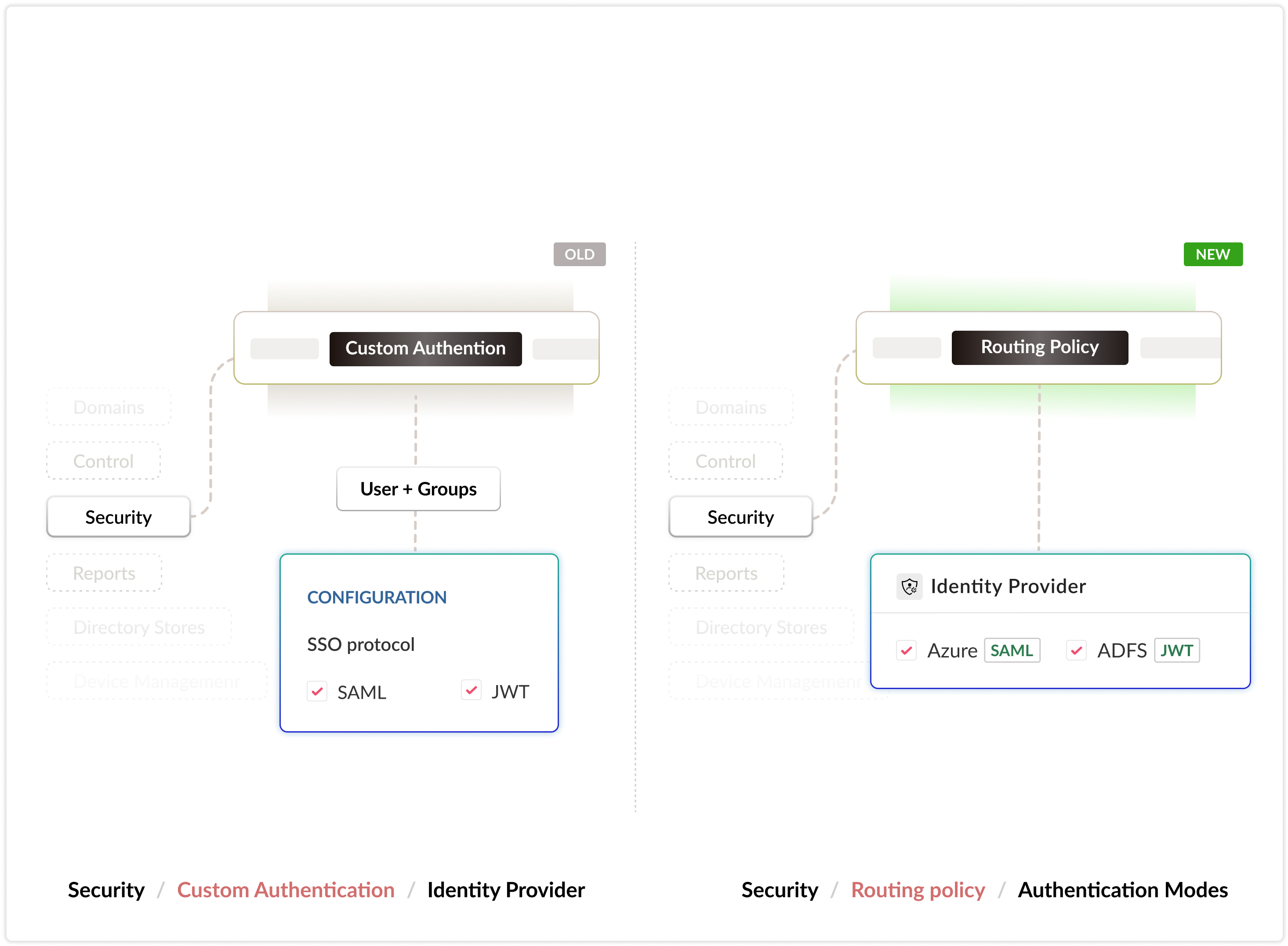 If you have added IdPs in Custom Authentication and have assigned groups to be authenticated through those IdPs, the setup will be migrated to Routing Policies as authentication mode.