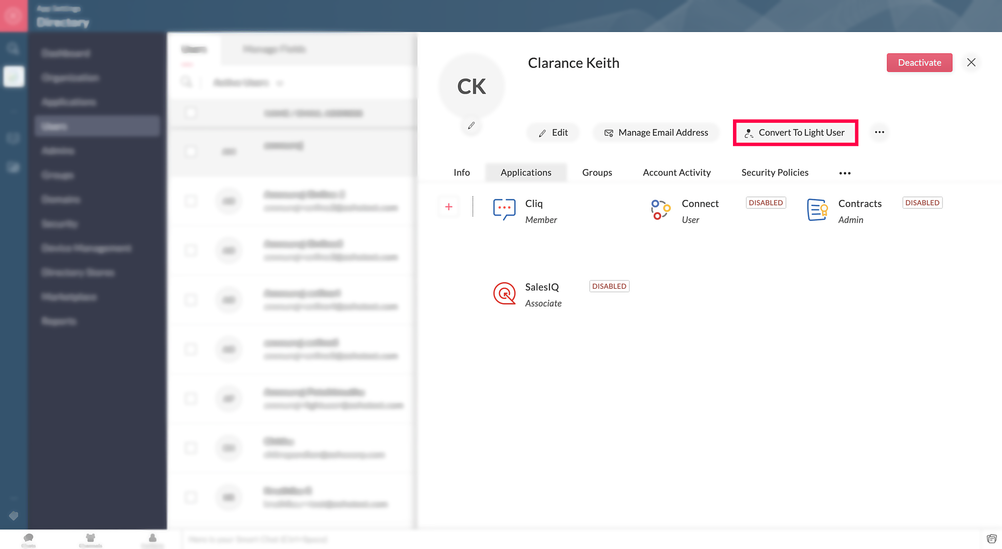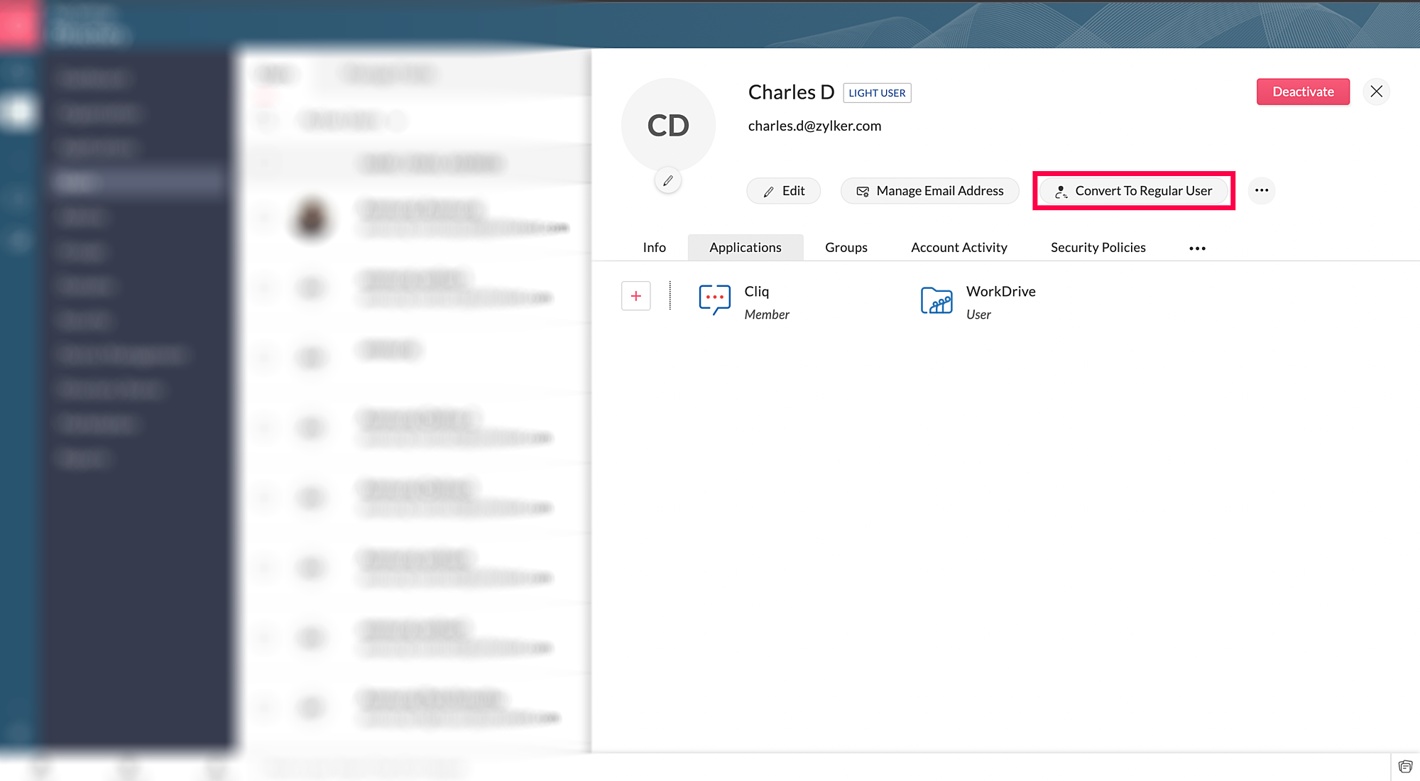 Note: You can convert a lite user into a regular user and vice-versa, provided you have enough Zoho One licenses and Collaboration add-ons.