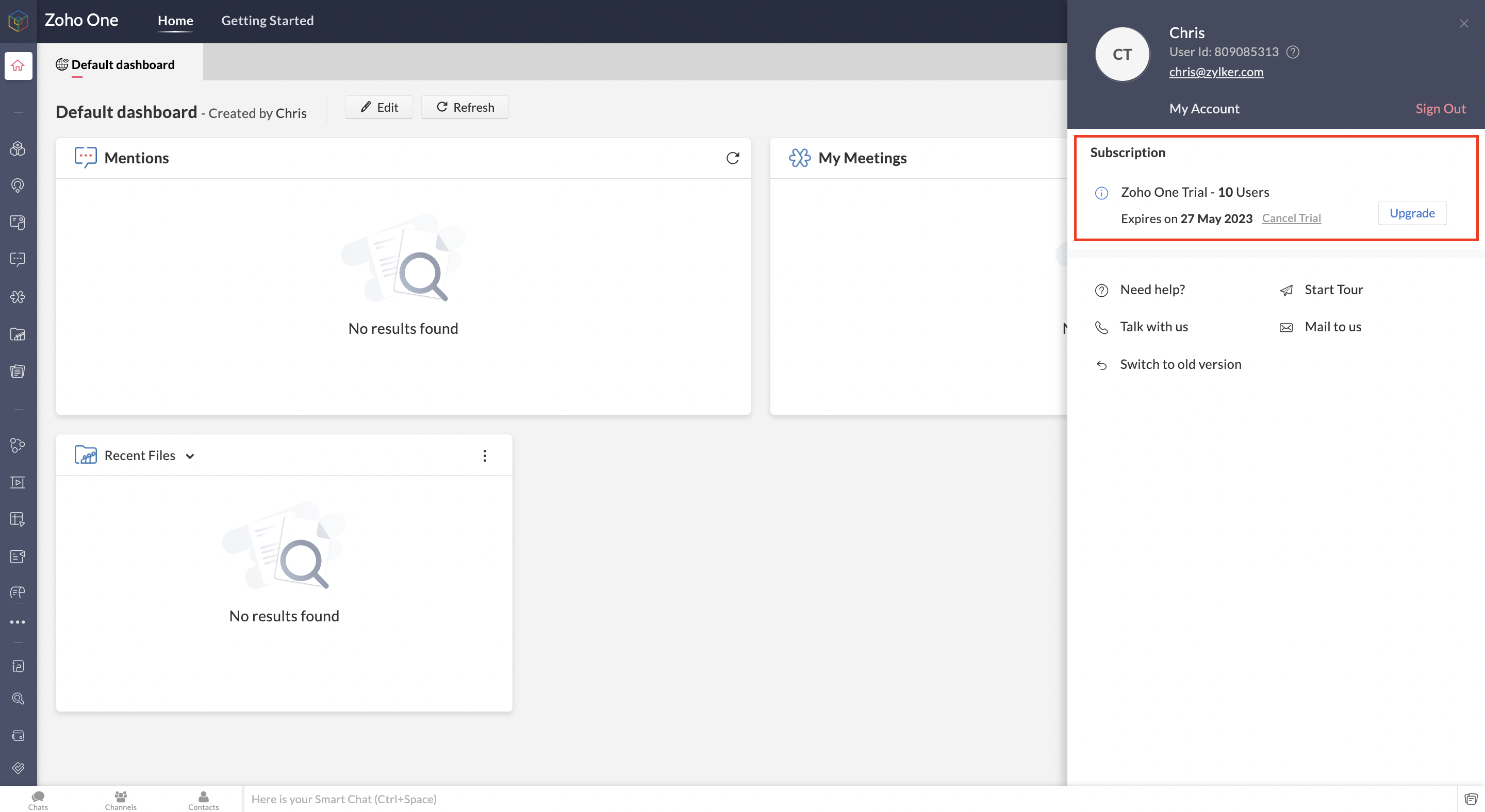 Description You may encounter this error when you sign up for a Zoho One trial account and add a paid standalone app to it. Your data from the paid app will not be migrated to the Zoho One trial account unless you upgrade to a paid Zoho One ...