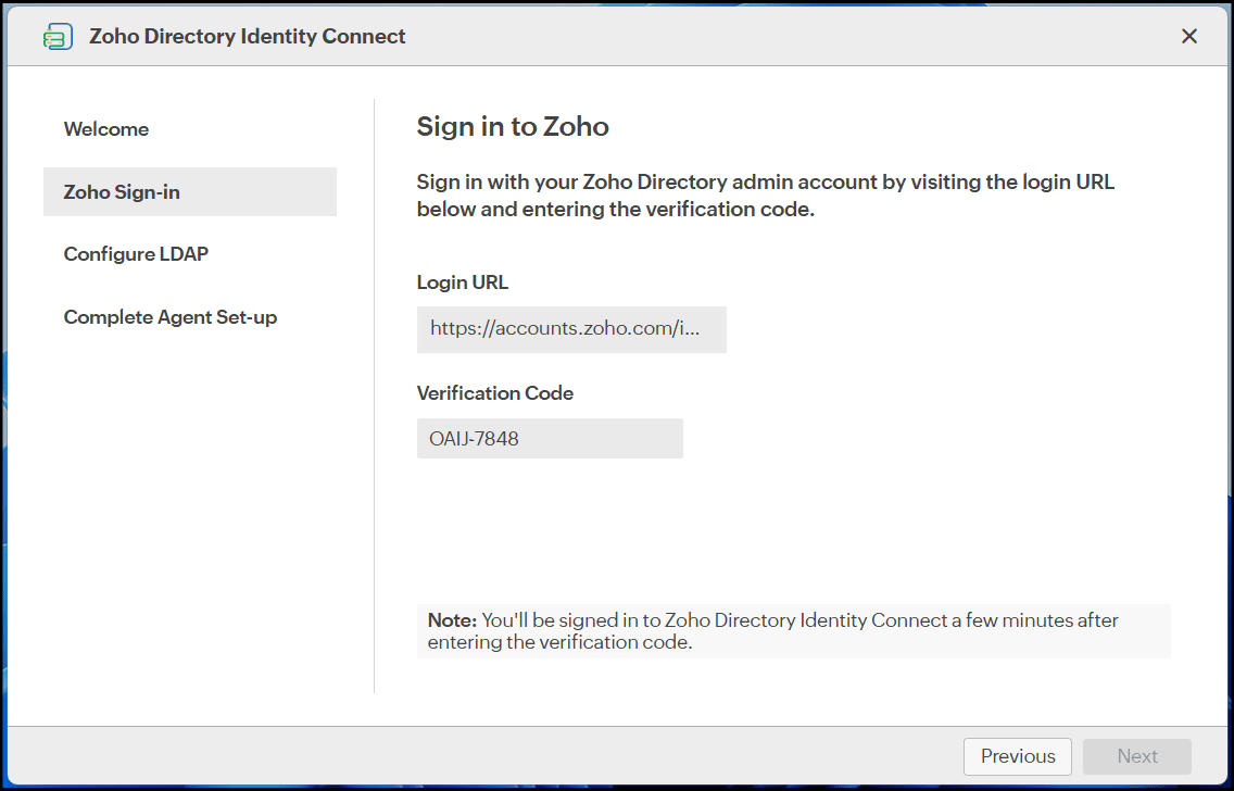 The verification code is time-bound and will become invalid after the expiration time (5 minutes). | Click Retry to generate a new code, which you can use to sign in and proceed to configuring your LDAP settings. |