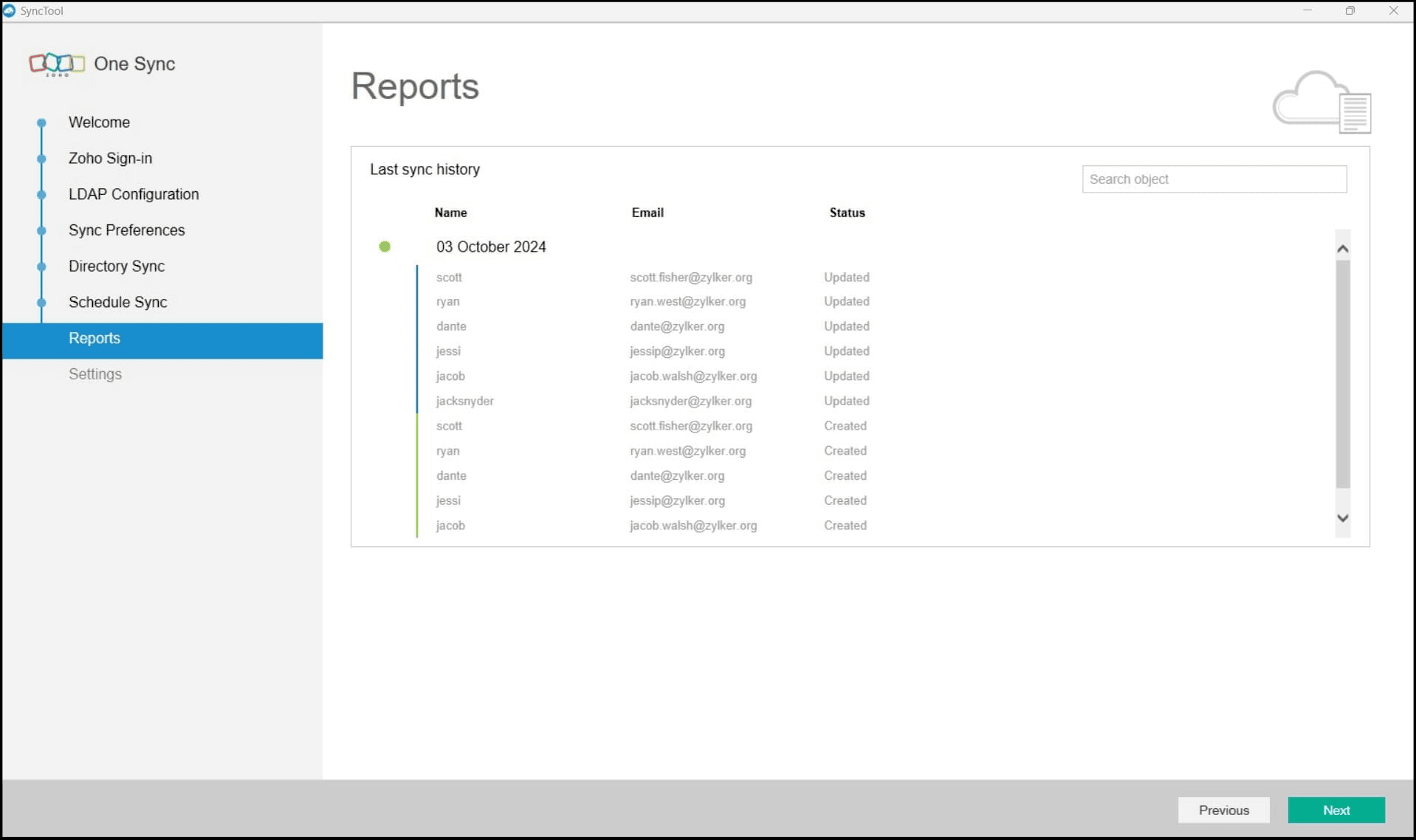Data Access Error | The Sync Tool is unable to access your Zoho One organization. | Sign in to the Sync Tool again using the Reassign ownership button in the Zoho Sign-in screen, then try syncing again. If the problem persists, contact support@zohoone.com with your Sync Tool's log files. |