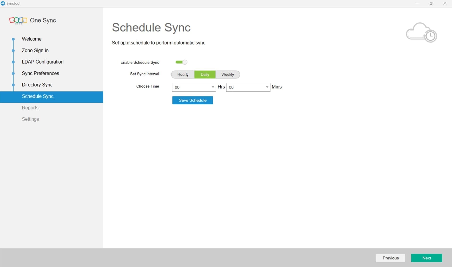 3. Set sync interval and time, then click Save Schedule.