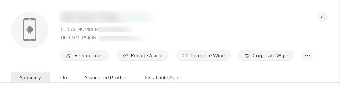 Installable Apps: Displays information such as the app name distributed to the device, assigned time, distributed version, and execution status. You can click on Distribute Apps to assign more apps to the device. Later, you can remove any app distributed to the device at any given stage.