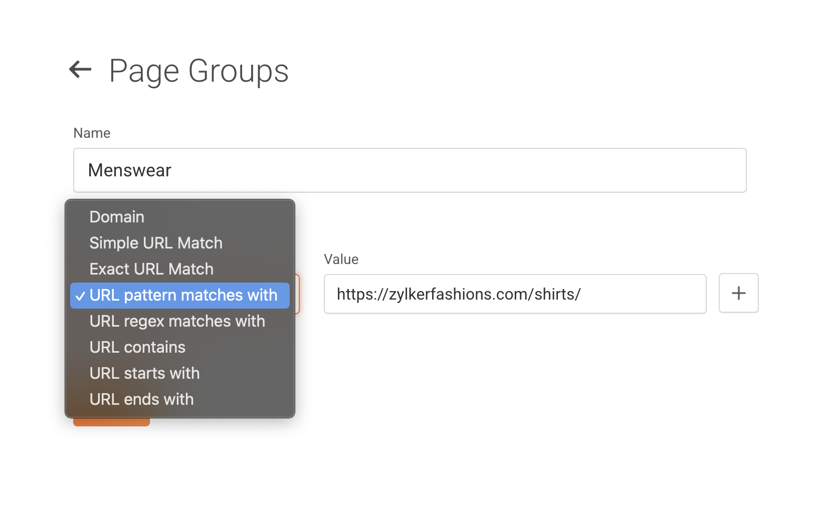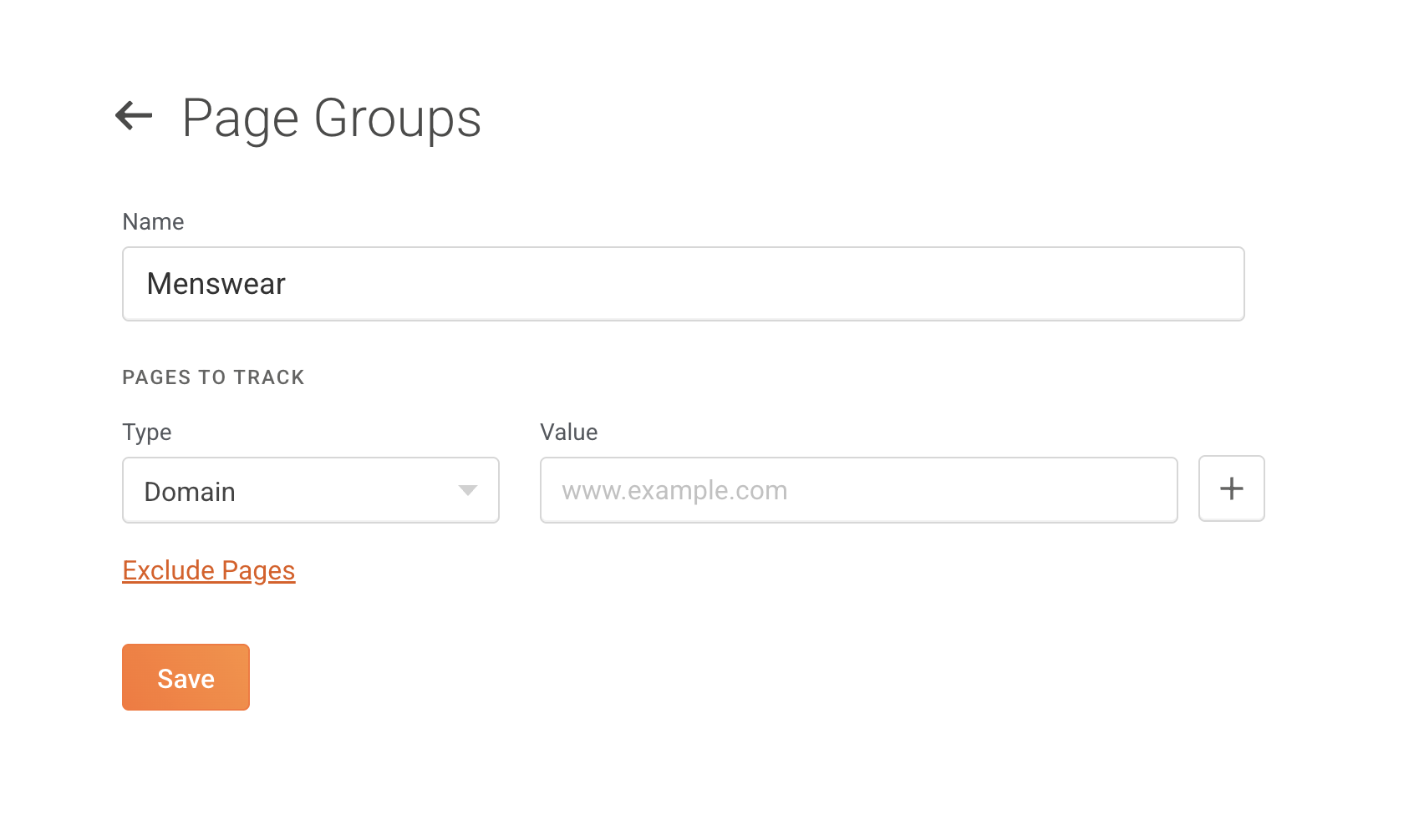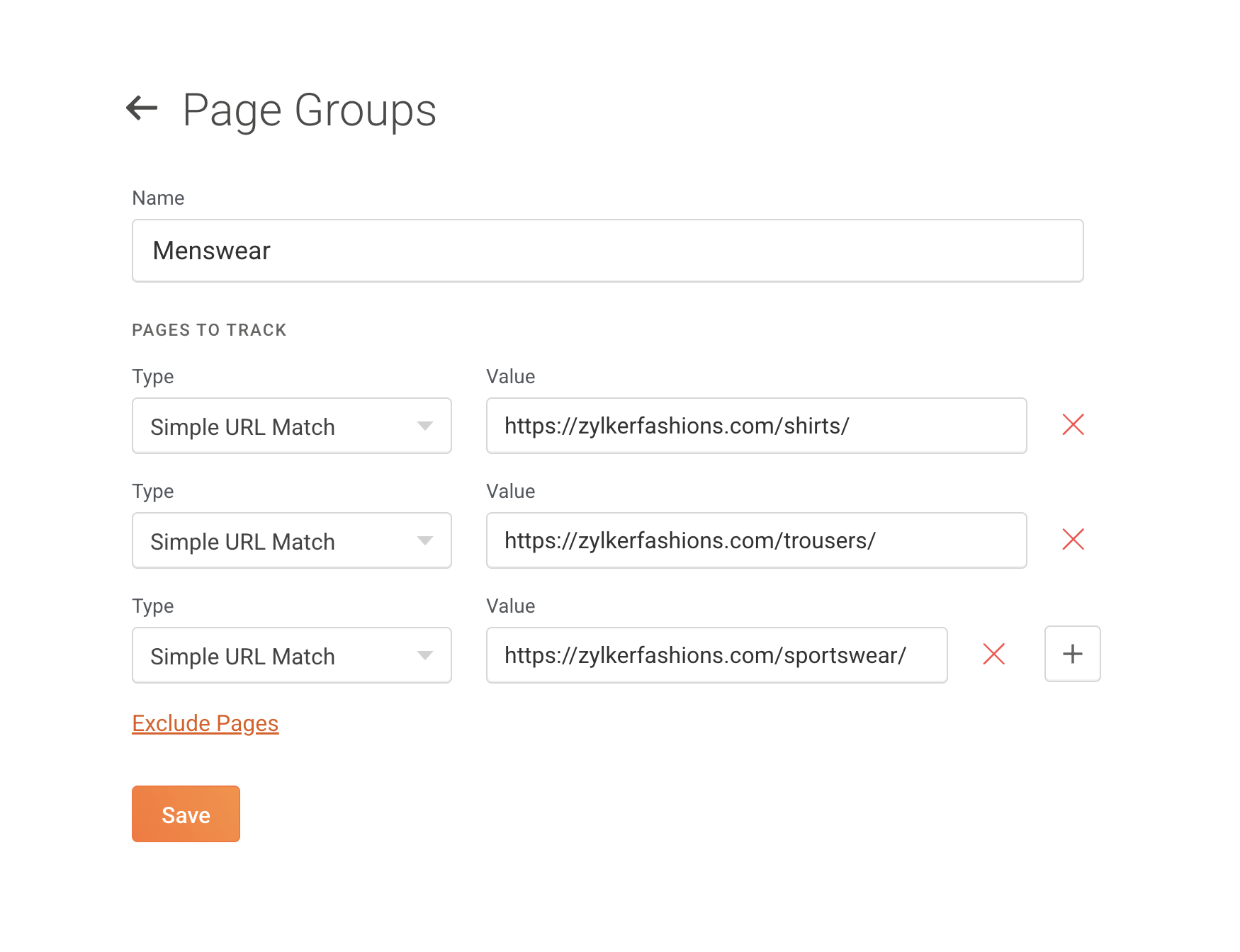 Now, say you want to run experiments and analyze the performance of your site based on different product categories and not everything as whole. In this case, using the page groups feature, you can choose to combine all the webpages that sell men's product into a common group named "Menswear", and all the webpages that sell women's product into a common group named "Womenswear" to compare the sales made by each group to the other on your website.