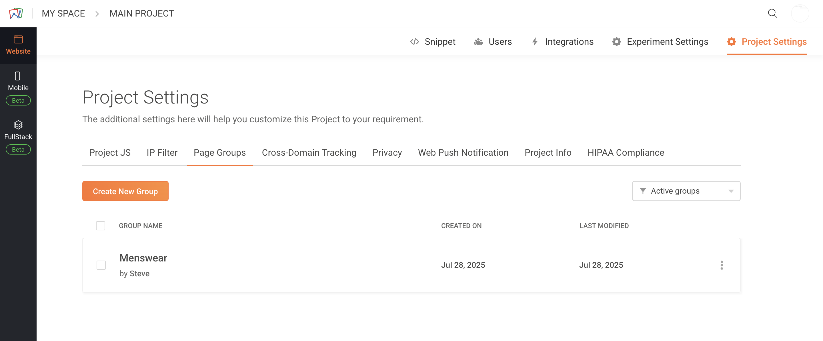 Sometimes you may want to target your a/b test, session recording, pop-ups and other experiments in PageSense towards a particular set of webpages related to certain topics or products in your business website. However, defining this whole set of webpages to run your experiments or ad campaigns each time can be time-consuming and lead to errors. PageSense can help you with this. Using Page Groups, you can easily combine a set of webpages with similar attributes into a common, reusable group that can be accessed across multiple experiments inside your Project. This option also helps you to drill down your reports based on webpages that are part (or not part) of the page group you created.