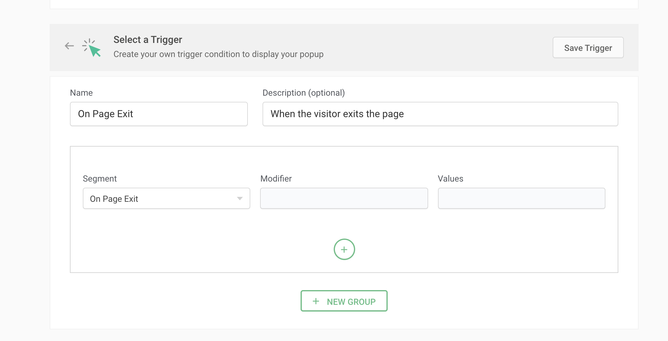 This option triggers your experiment when a visitor is about to leave your webpage. The exit action of the visitor is determined when their cursor moves out of the page layout. This type of triggering a pop-up or poll on your webpage can be a great method to entice visitors with an attractive offer that they can't resist when they're about to leave your website. Using the On Page Exit trigger for your experiment can also create a new second opportunity to hook and redirect customers to your products and services that help increase revenue for your business.
