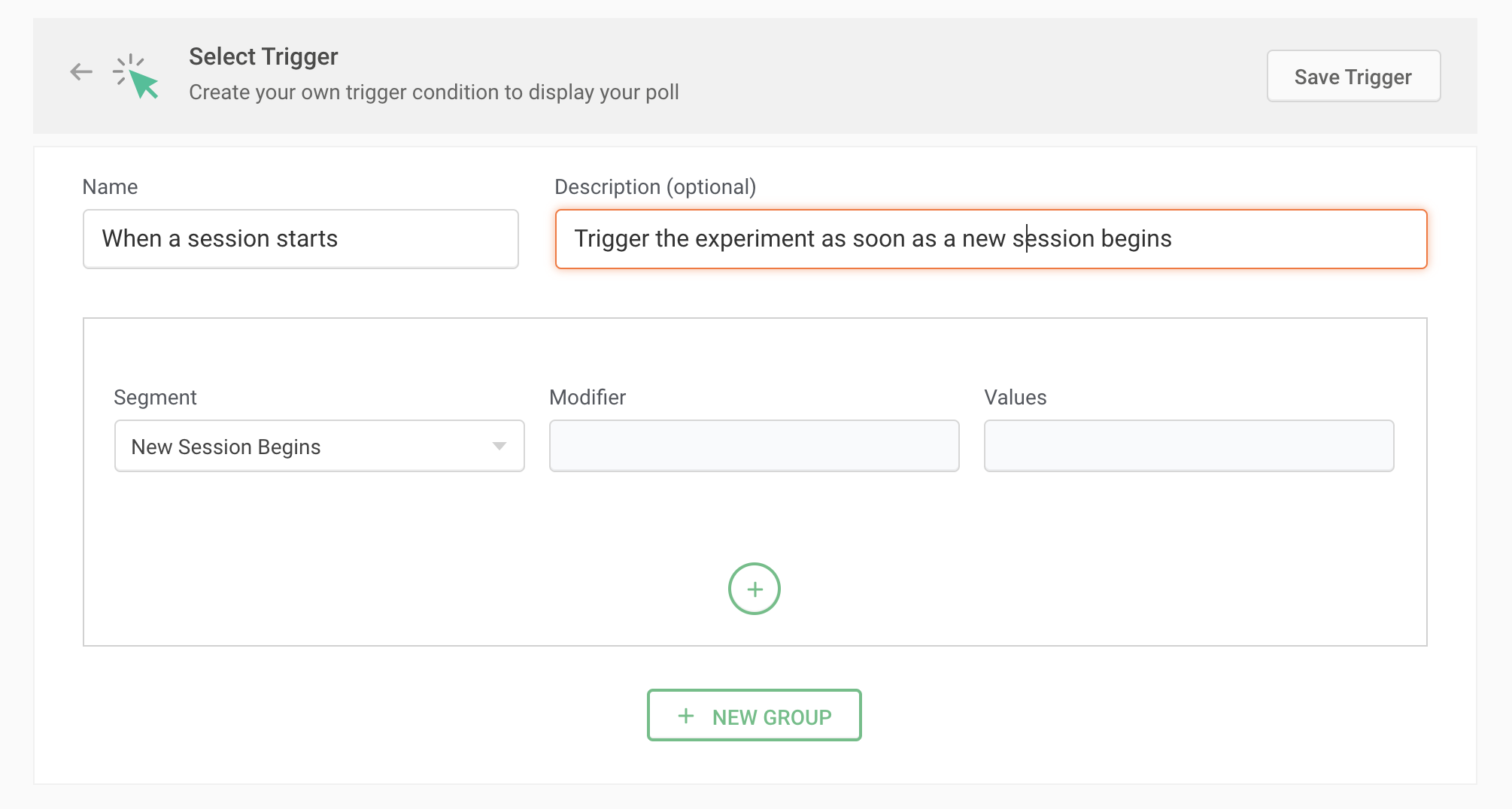 These are the default set of trigger conditions that you can readily choose from to activate your experiment.