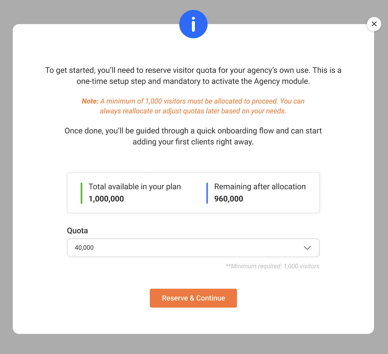 Click it, and the first thing you’ll be prompted to do is reserve visitor licenses for your agency’s own use.