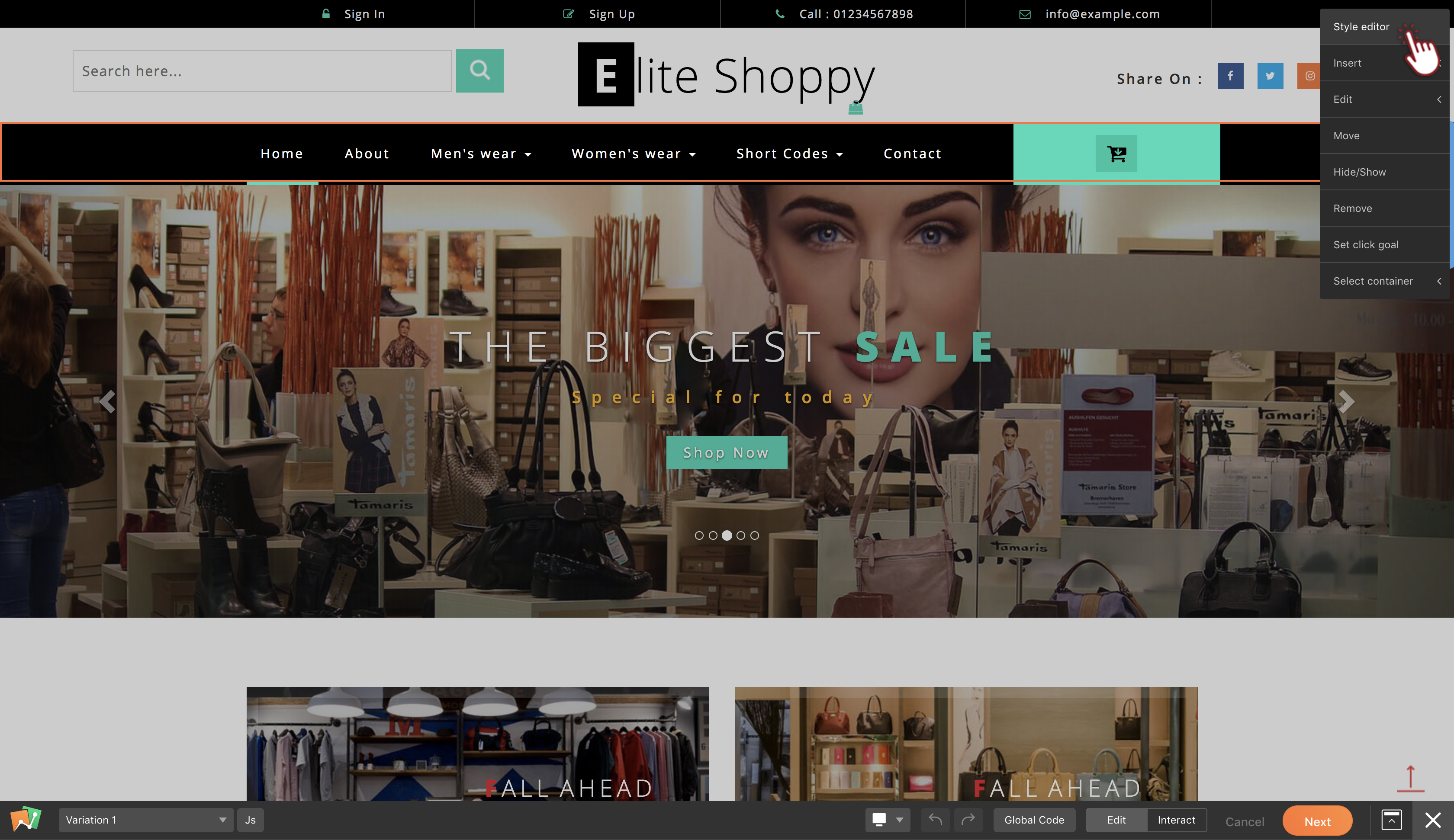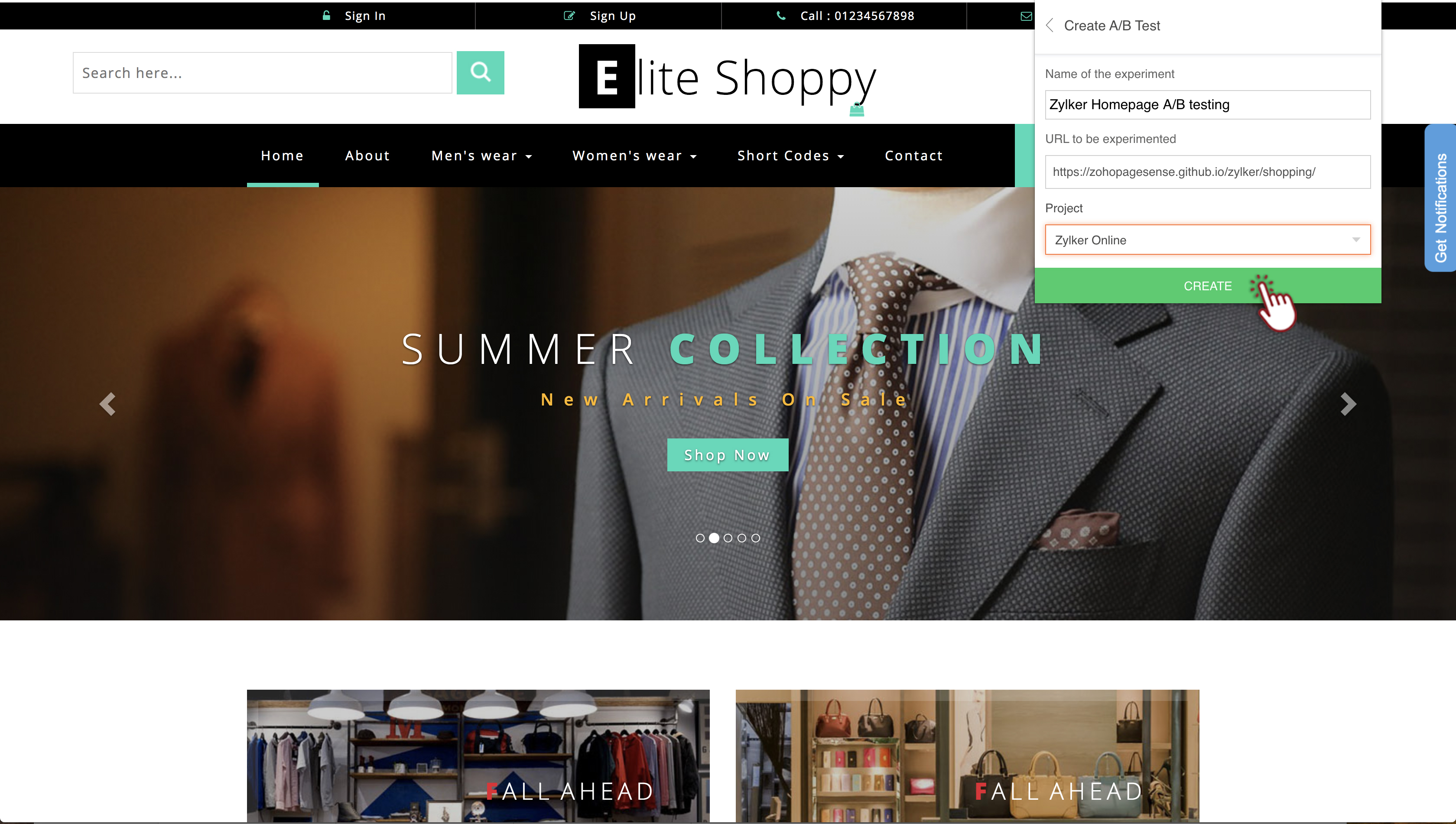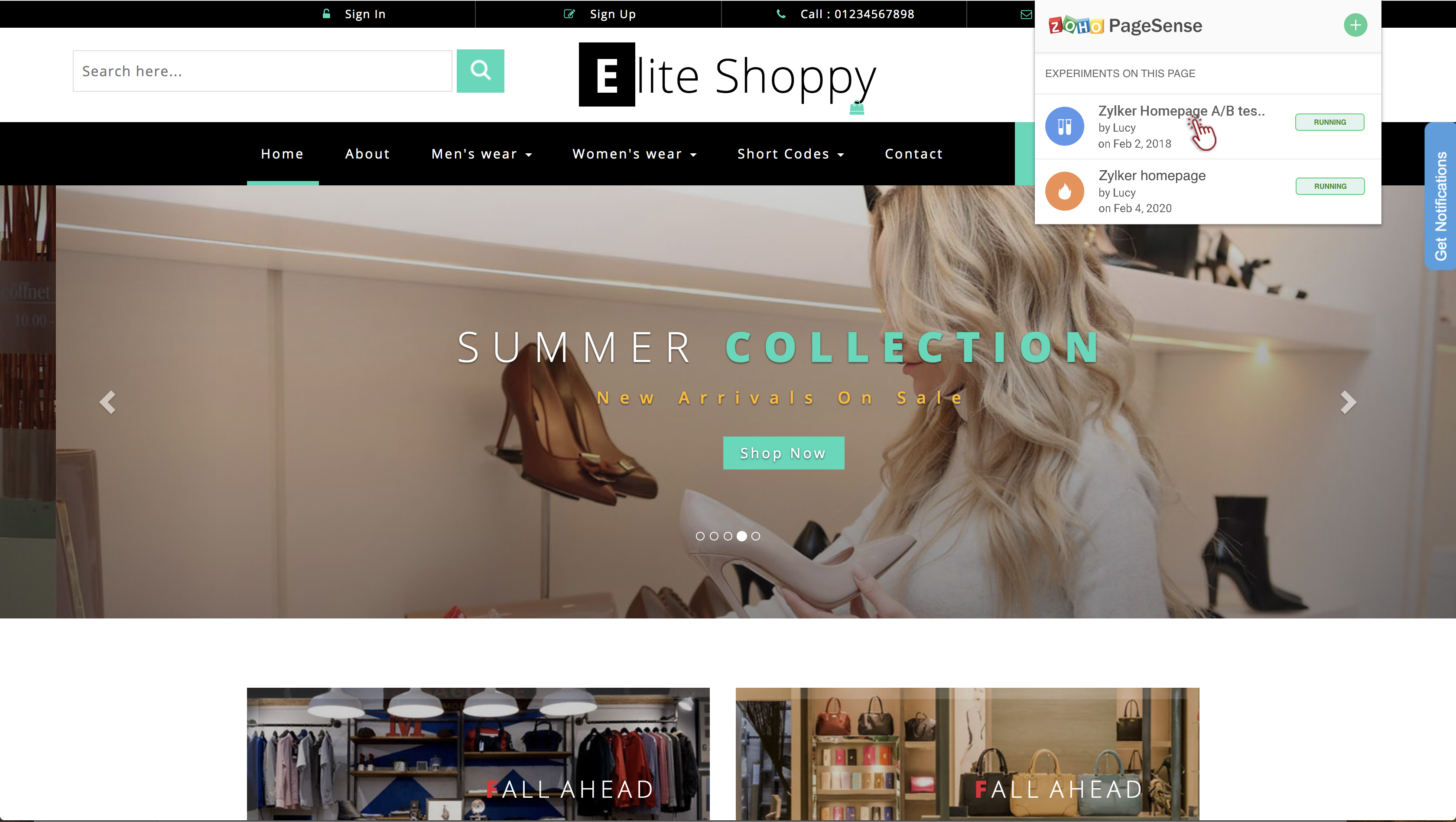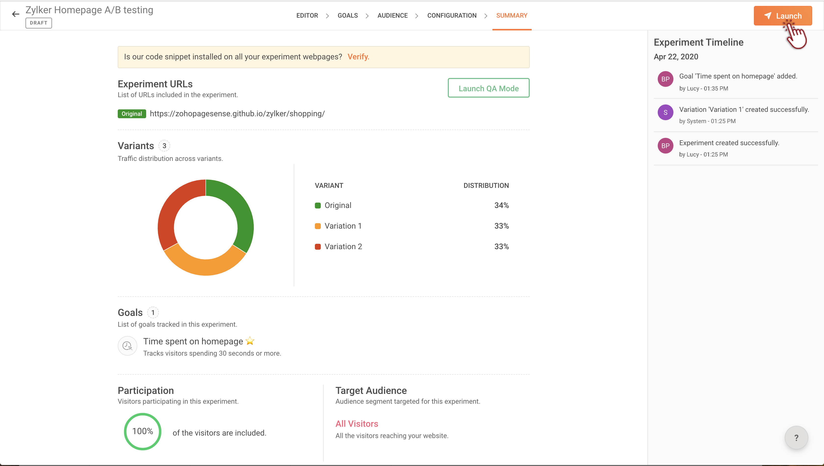Your experiment will load the PageSense visual editor at the bottom of your web page. Learn more about using the visual editor in Zoho PageSense.