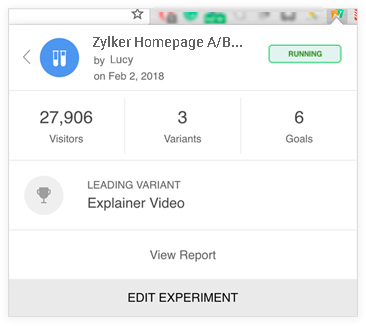 1. Click the Zoho PageSense extension icon on your Chrome browser and click the A/B test for which you want to view reports.
