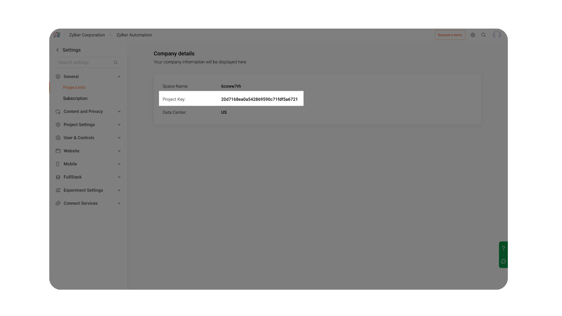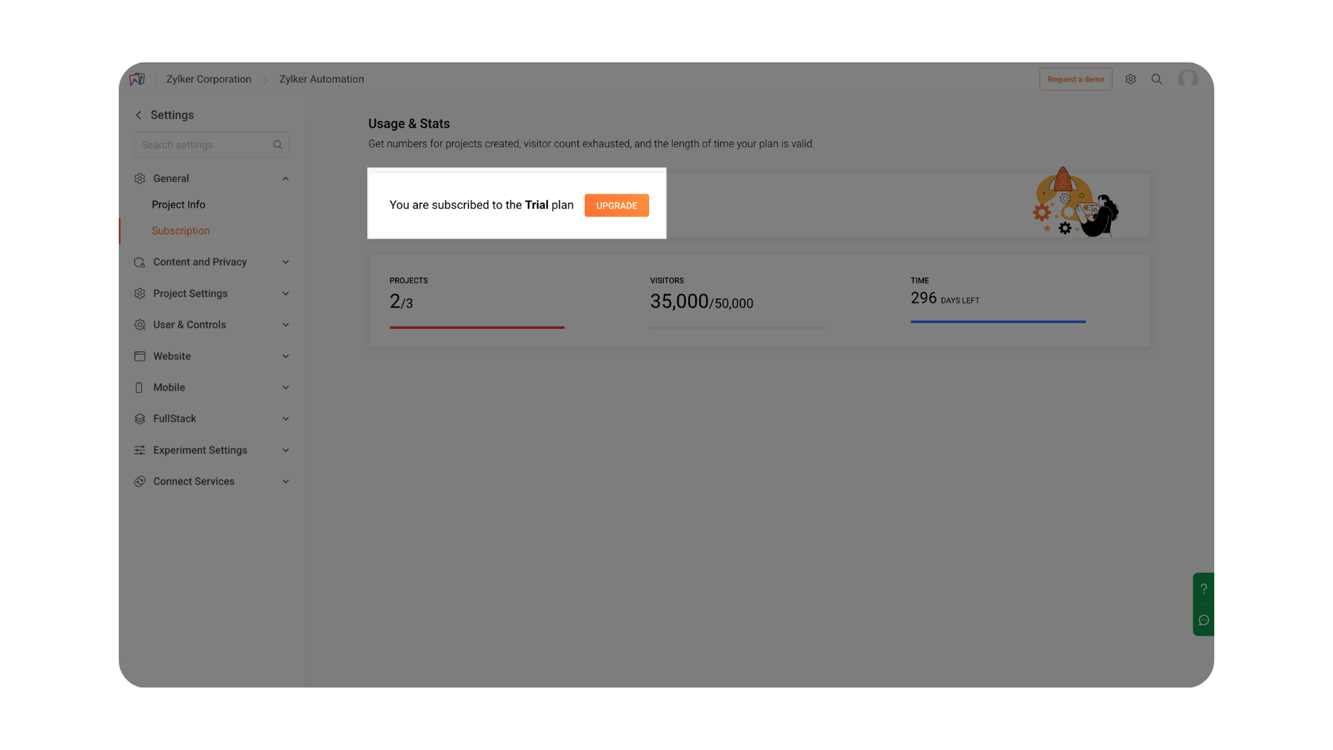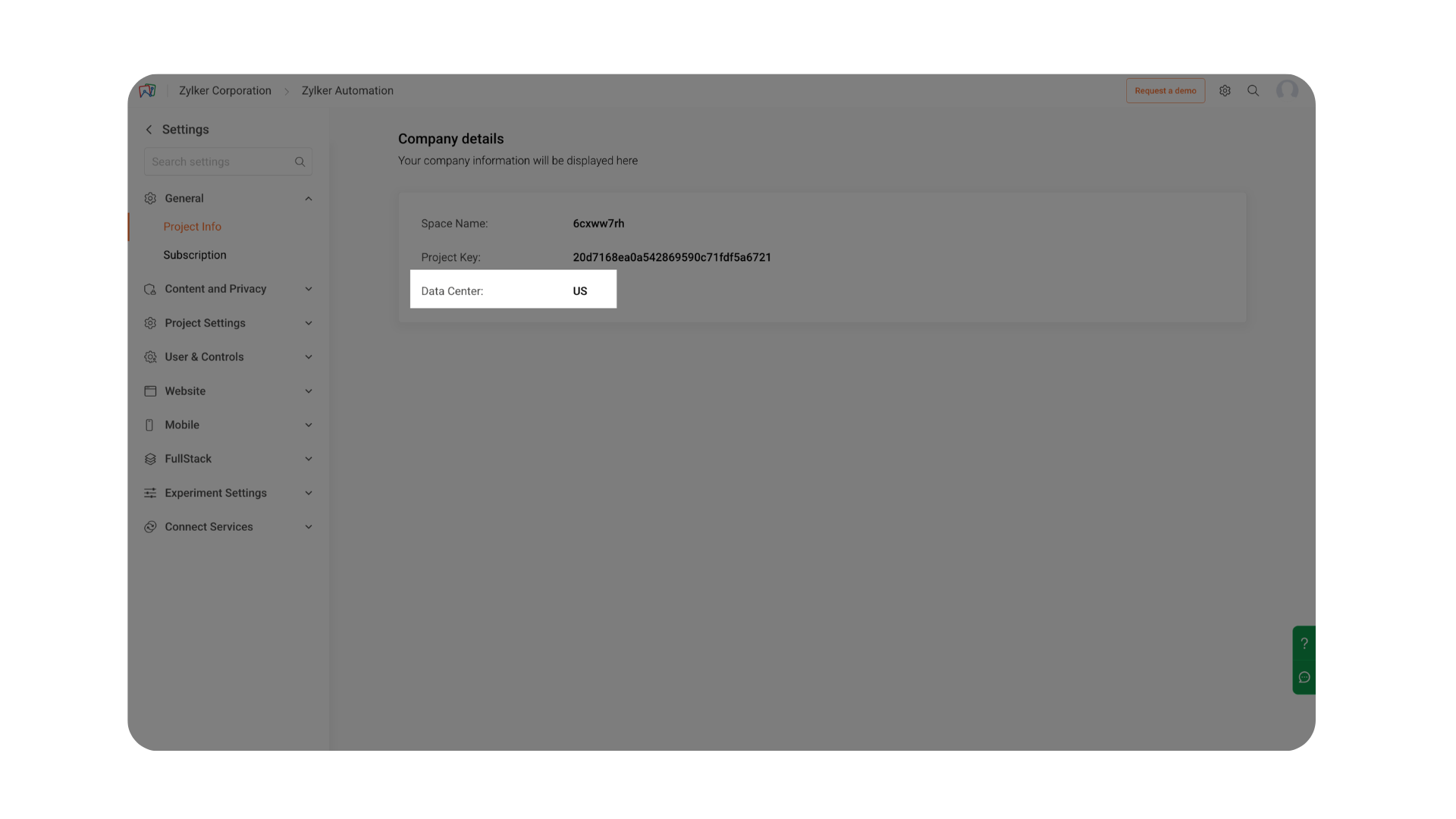 The General section in Settings provides an overview of your project’s essential information and subscription details in Zoho PageSense. It helps you quickly identify the configuration of your project and monitor how your current subscription plan is being utilized.
