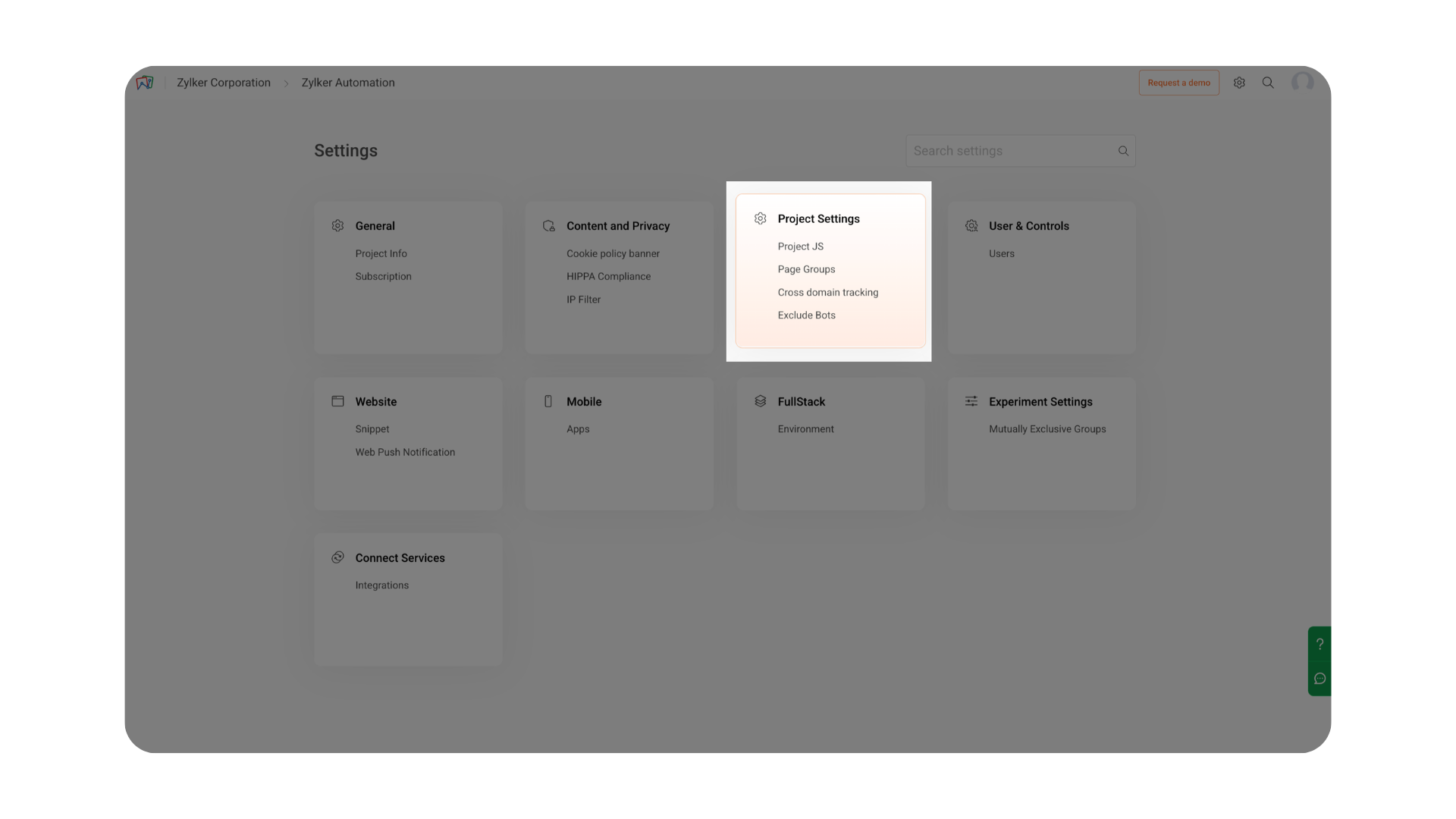 Note: The Settings icon is located in the top-right corner of your PageSense interface. From there, navigate to Project Settings to configure the options described below.The Project JS section allows you to add custom JavaScript code that runs across all pages of your website where the PageSense snippet is installed.